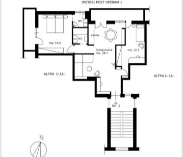 Bilocale di ampia metratura con possibilità di ricavare una terza camera, doppi servizi, ripostiglio ...