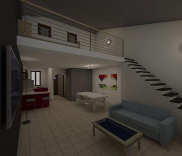 Appartamento piano primo di mq 90, composto di: ampio soggiorno con cucina a vista, 2 camere, 2 bagn ...
