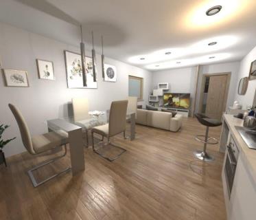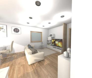 Appartamento di nuova costruzione, al primo piano; 100 mq, soggiorno con angolo cottura, due camere, ...