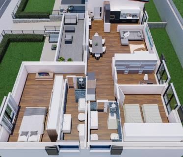 Attico in costruzione, quarto piano con ascensore, 125 mq; ampio soggiorno con cucina, tre camere, d ...
