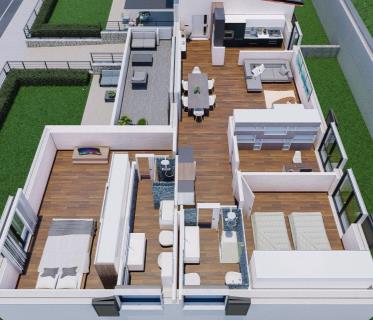 Attico su due piani, 2 camere da letto molto spaziose, 2 bagni, soggiorno con cucina a vista e balco ...