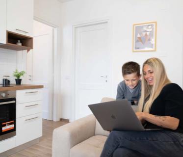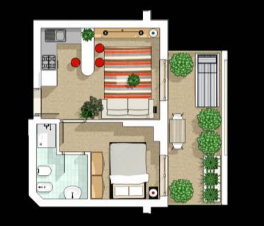 Moderno e comodo bilocale IN CLASSE A composto da: soggiorno, angolo cottura, comoda camera matrimon ...