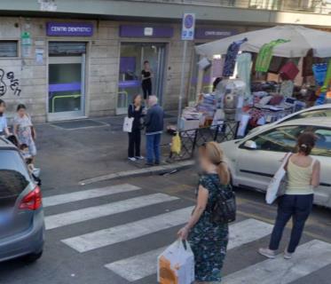 Viale G. Marconi, in prossimità di Piazza E. Fermi, nel tratto più popoloso di fronte al semaforo e ...