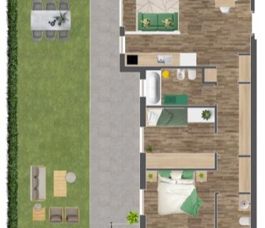 BILOCALE CON GIARDINO DI 80MQ E POSTO AUTO PRIVATO