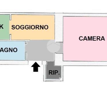 Bilocale di ampia metratura composto da: piccolo soggiorno con cucina, camera da letto con bagno, se ...