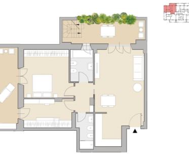 Panoramico Attico di 58 mq interni composto da soggiorno con cucina a vista, camera da letto matrimo ...