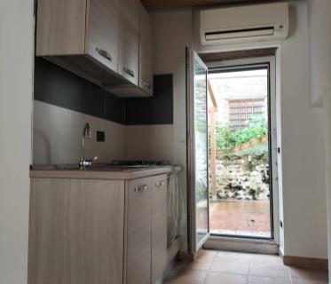 Cantina piano strada, ristrutturata uso monolocale con bagno finestrato e porta finestra di accesso ...