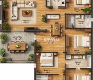 Porzione di Trifamiliare Via Terme di Traiano con 3 camere 2 bagni giardino angolare cosi composta P ...