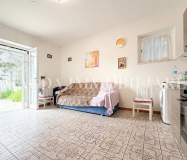Piano terra di 54 mq con giardino mattonato di 18 mq e posto auto composto da: ampia zona giorno/not ...