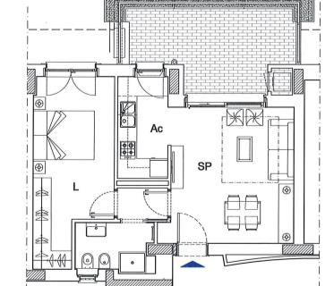 Bilocale con terrazzo composto da soggiorno con angolo cottura, camera da letto e bagno. Infissi in ...