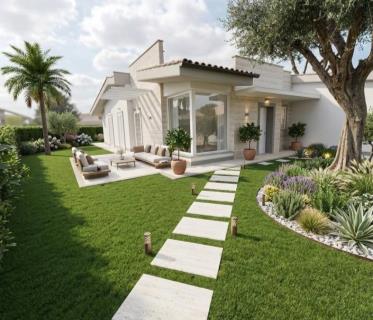 Villa indipendente piano terra composto da salone con angolo cottura, tre camere da letto e tre bagn ...