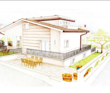 Villino con corte circostante. l’unità è composta da: un piano seminterrato con soggiorno-pranzo, ca ...