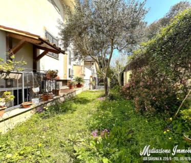 Porzione di villa trifamiliare angolare con giardino