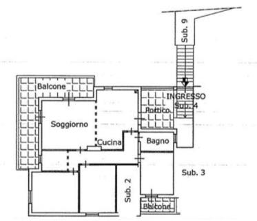 Appartamento su tre piani fuori terra, con corte esclusiva annessa delimitata, composto al piano ter ...
