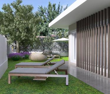 In vendita elegante bifamiliare di 120 mq l'una, con giardino da 200/250 mq e area parcheggio, conse ...