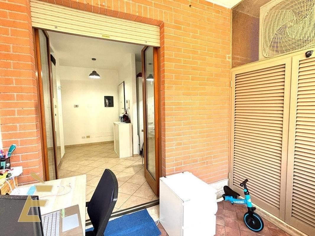 L’immobile è composto da una spaziosa zona living, attualmente suddivisa in due ambienti grazie a un pratico armadio guardaroba, e da un angolo cottura funzionale con tavolo a penisola. Entrambi gli ambienti hanno accesso, tramite porte finestre con doppi vetri e infissi Douglas, a un ampio terrazzo circolare, impreziosito da vetrate Skyglass, che consentono di vivere lo spazio esterno anche nei mesi invernali. Completa la proprietà una camera da letto e un bagno con doccia e sistema di aerazione. Tutti gli ambienti sono dotati di fan coil caldo/freddo. Completa la proprietà un comodo posto auto situato in prossimità dell’ingresso dello stabile.