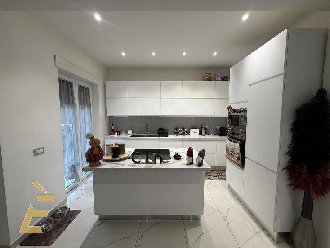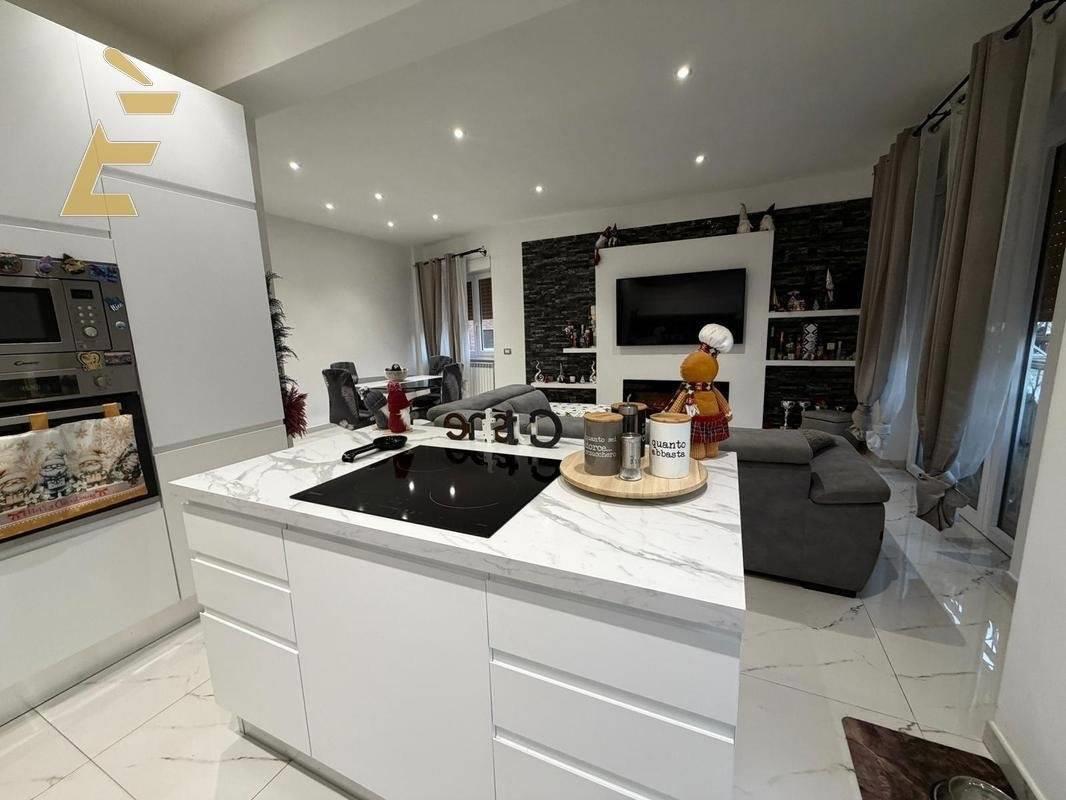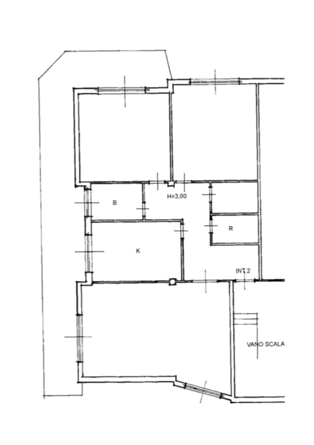 Ingresso, salone doppio (con possibilità di ripristinare la terza camera da letto), cucina attualmente a vista con isola centrale (possibilità,a scelta, di renderla a sè stante).