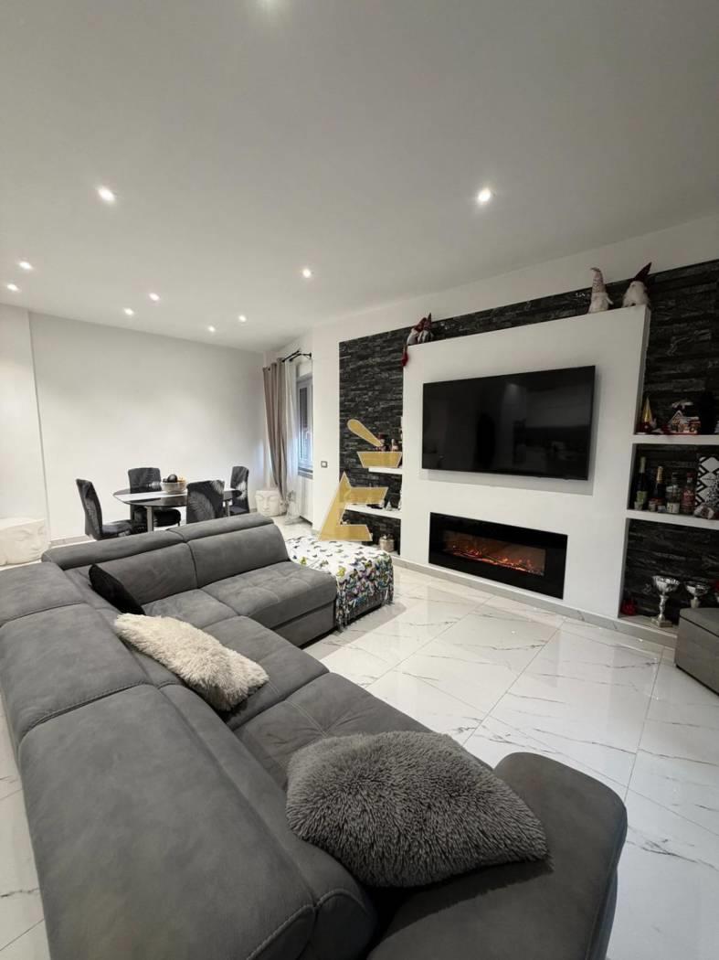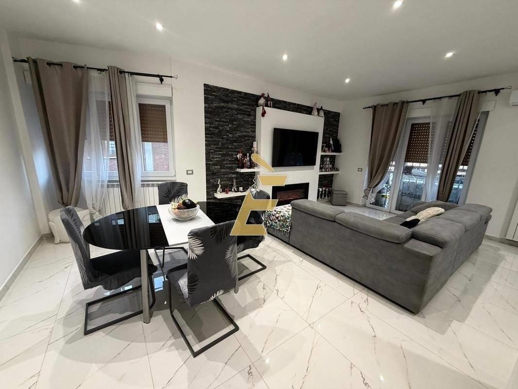 Internamente la pavimentazione è in grès porcellanato (effetto marmo), tutte le porte interne sono state sostituite, come la totalità degli infissi in pvc bianco con doppio vetro, tutte le serrande dell'immobile sono elettriche.