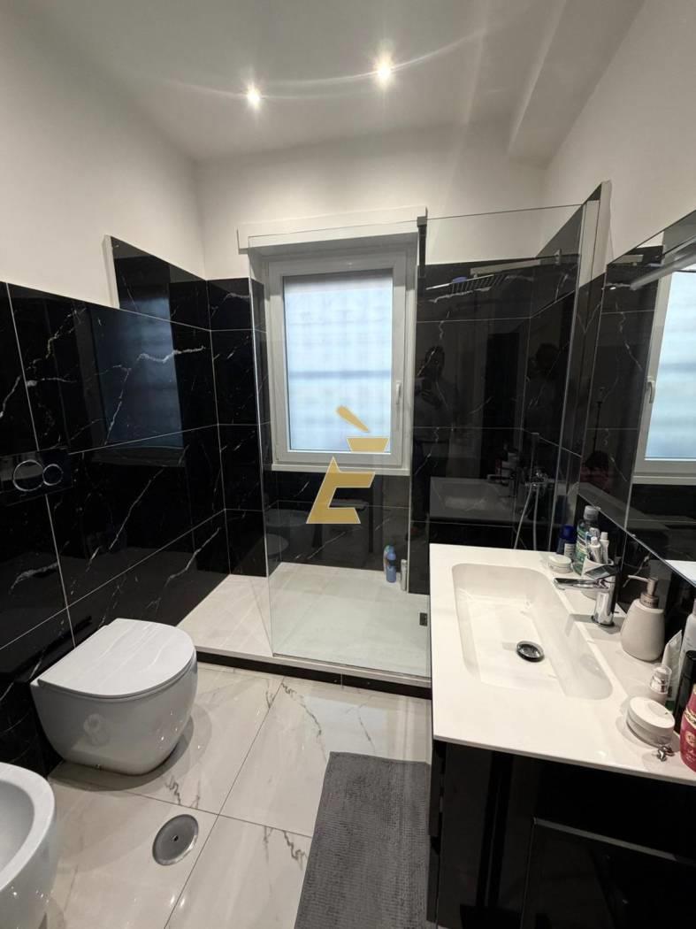 Tra la zona giorno e la zona notte un disimpegno dove si trova un ripostiglio, la camera matrimoniale, la seconda camera con bagno privato e il bagno finestrato.