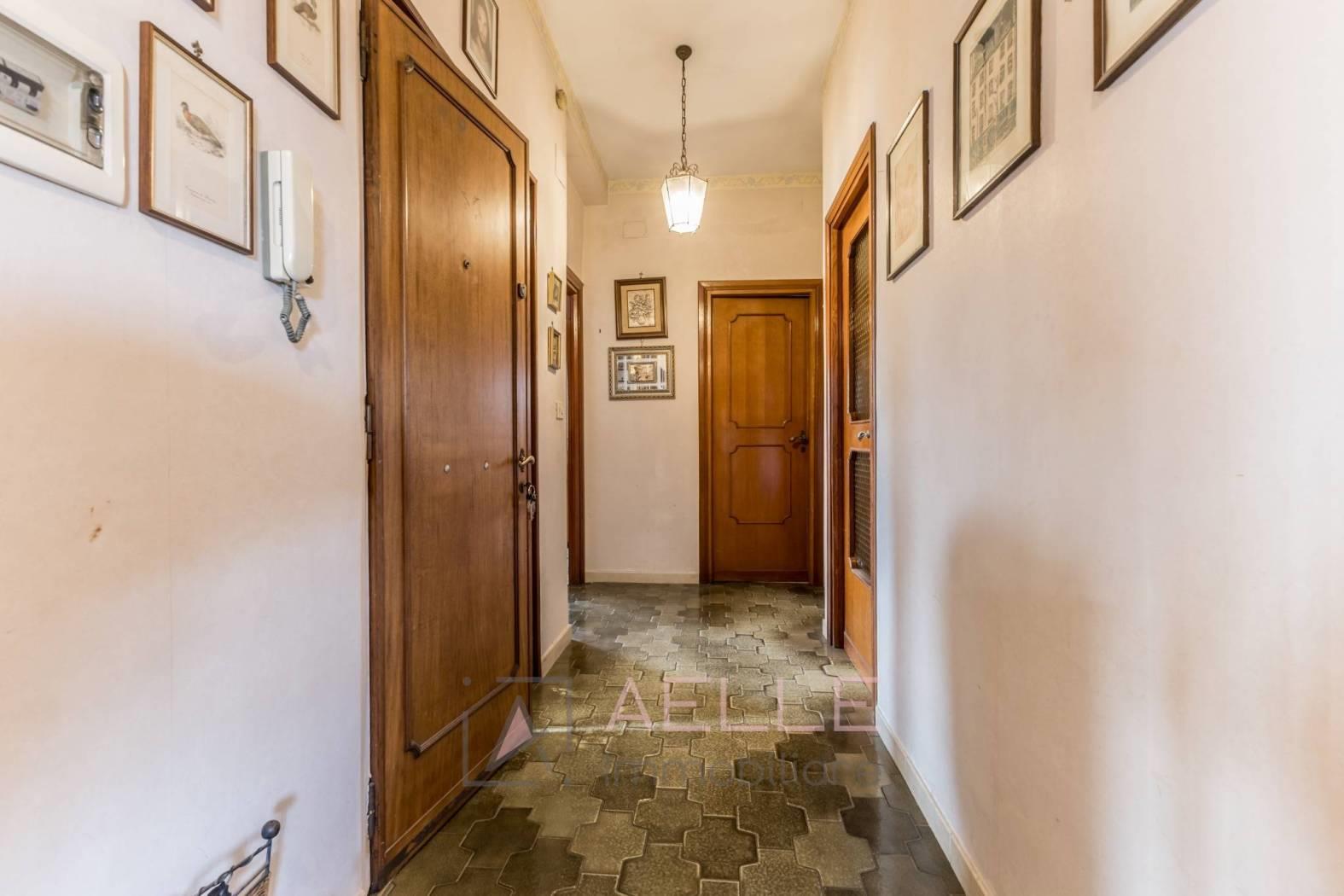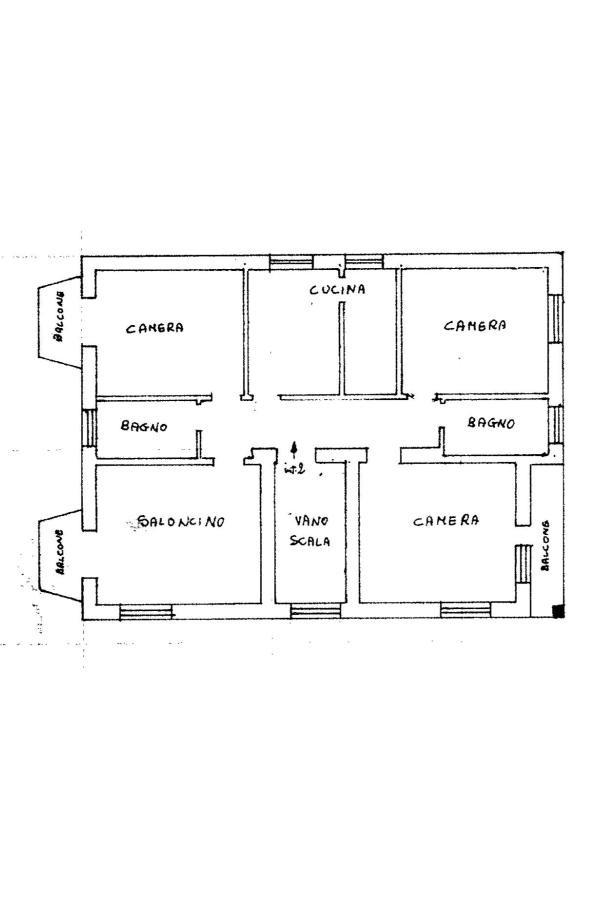 Salone con balconcino, cucina abitabile con balconcino, tre camere matrimoniali (una con balconcino), corridoio e due bagni finestrati con doccia.