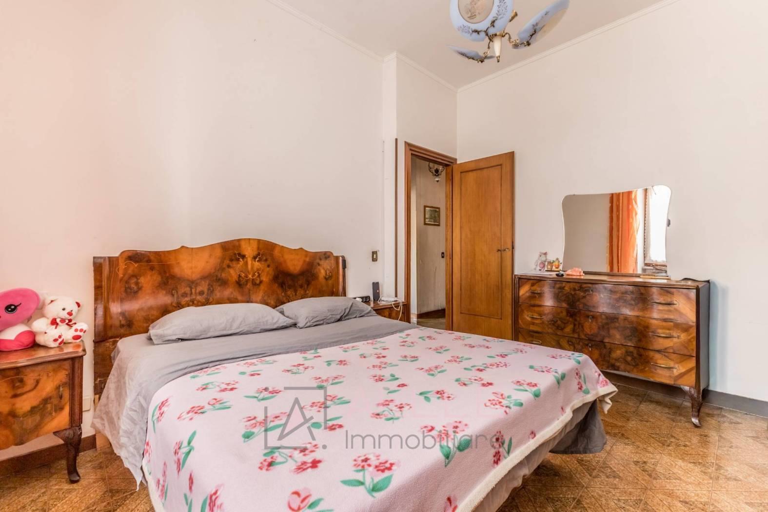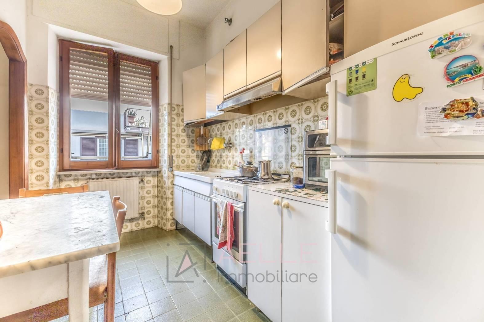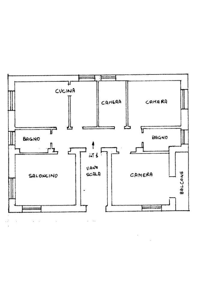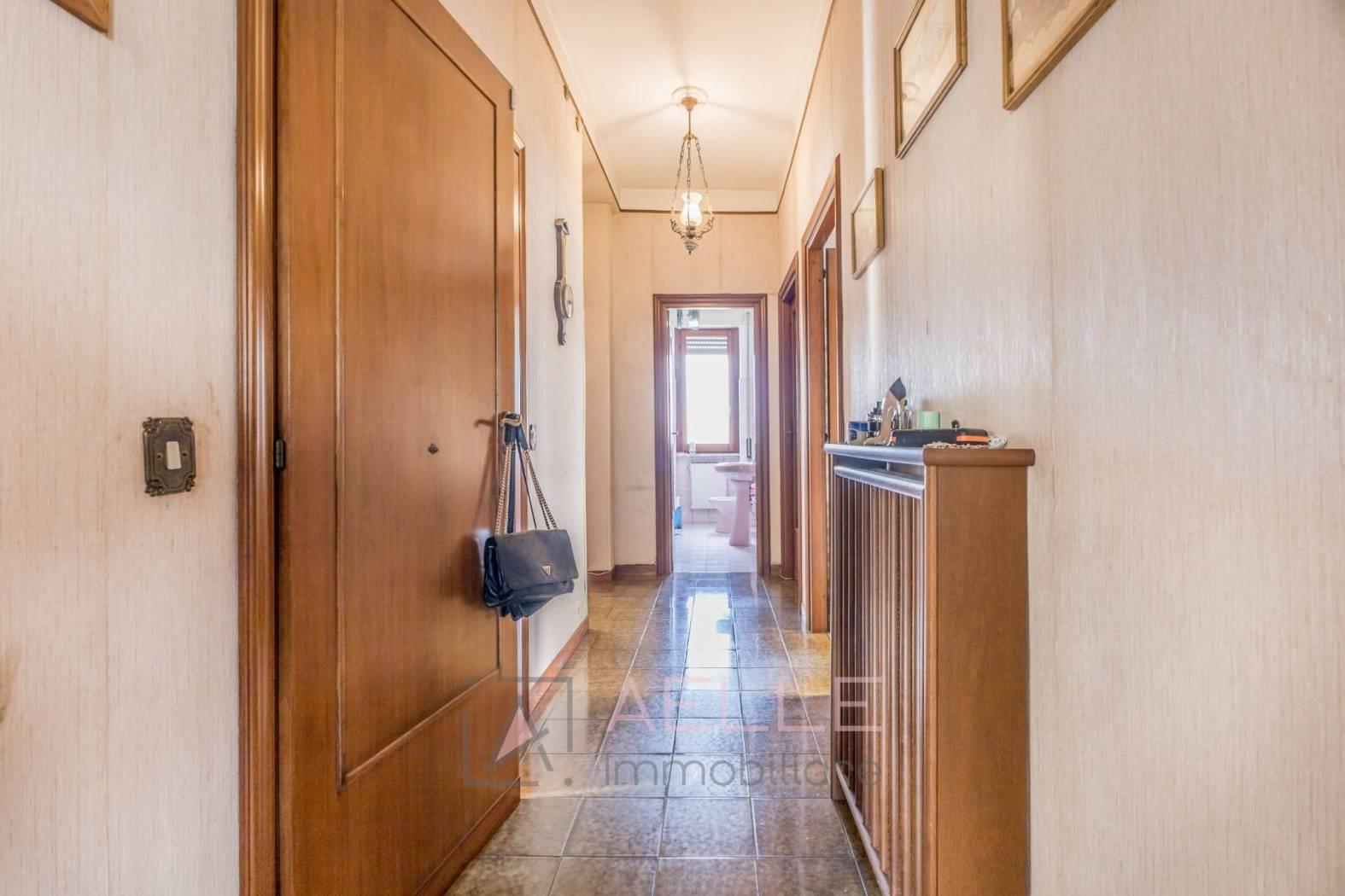 Soggiorno, cucina abitabile, bagno finestrato con vasca, corridoio, tre camere matrimoniali (una con balconcino), una cameretta/studio e secondo bagno finestrato di servizio.