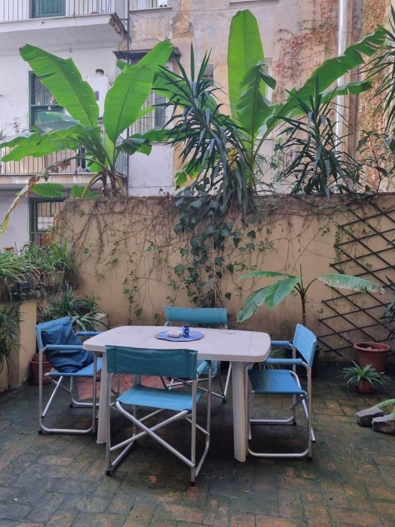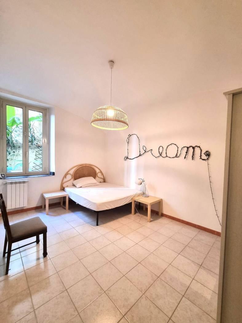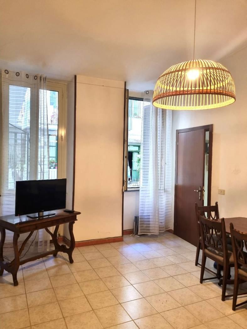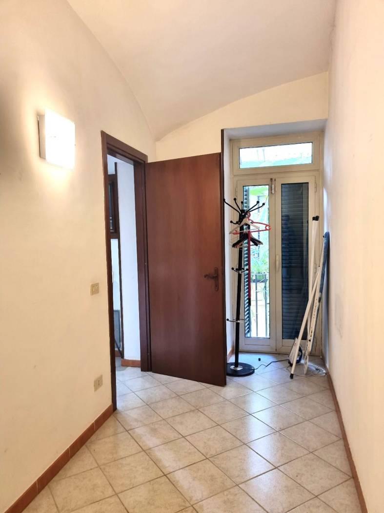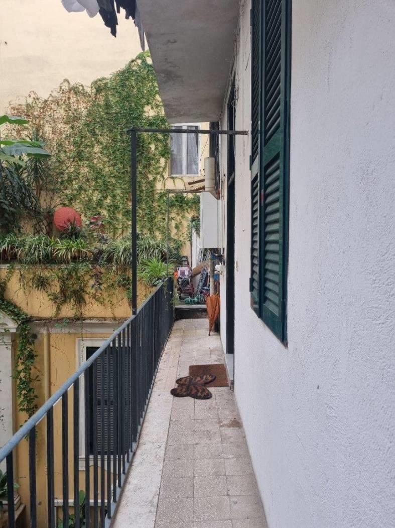 Delizioso appartamento arredato al primo piano con accesso da proprio ballatoio, ingresso in bella cucina abitabile completa di lavapiatti forno e frigorifero, salotto-pranzo arredato con divano letto tavolo sedie e tv, camera passante (largo corridoio puo' essere un angolo studio) per accedere dalla cucina al bagno doccia con lavatrice ed alla camera con letto matrimoniale con armadio e soppalco ripostiglio. Bella TERRAZZA rettangolare vivibile privata. Termoautonomo.