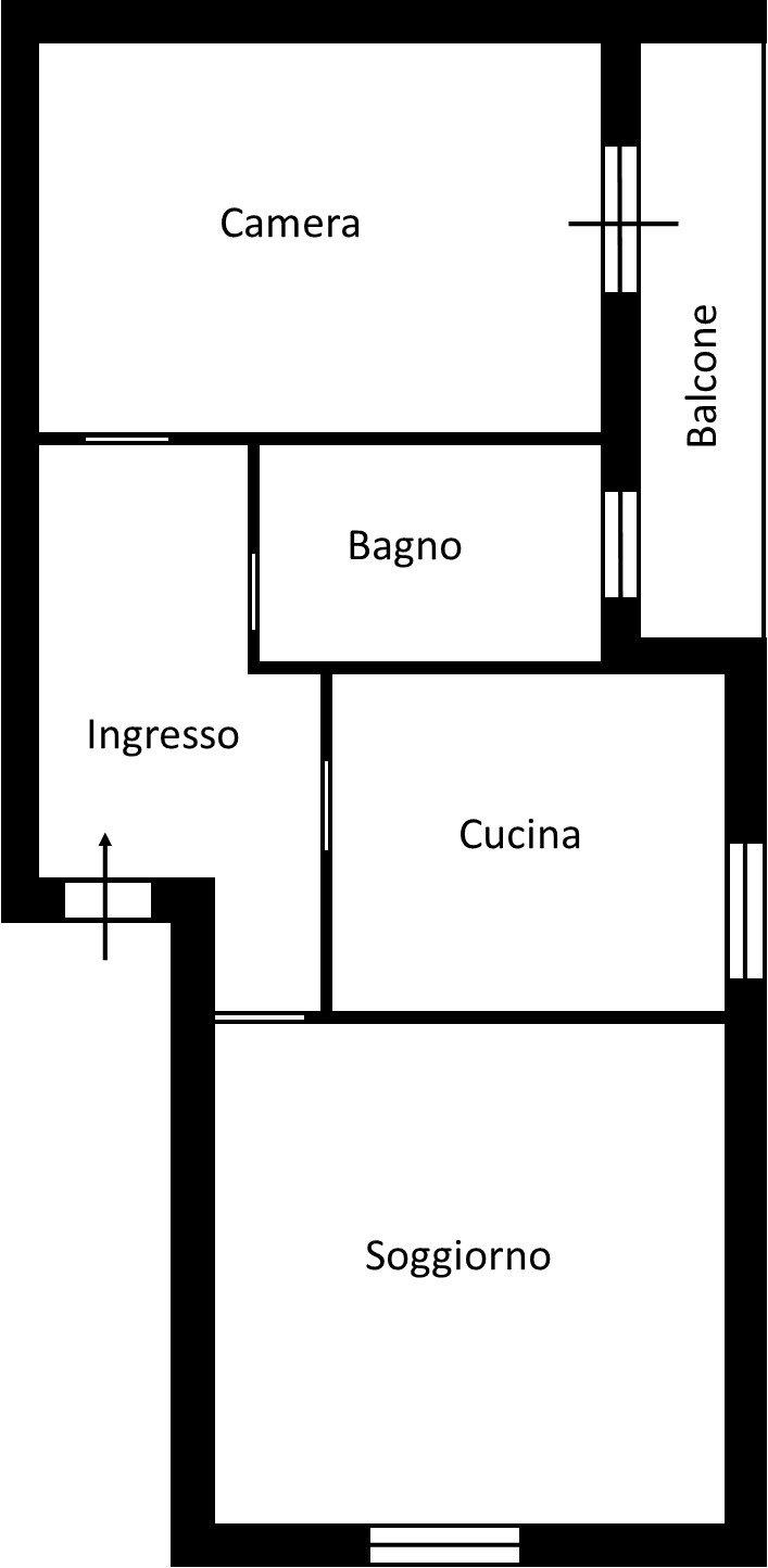 La composizione interna prevede un ingresso, soggiorno, camera da letto, cucina abitabile, comodo bagno finestrato con vasca, ed un balcone.