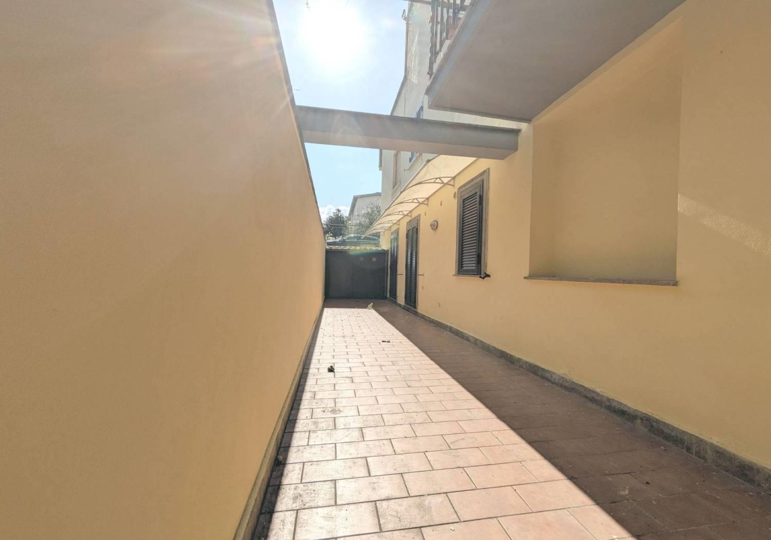 In Via A. Olearo, una traversa di via Milano, vicino alla chiesa, le attività commerciali, la stazione dell'Acquacetosa e le scuole, proponiamo in vendita un appartamento posto al piano seminterrato di una piccola palazzina in pittura composta da soli 7 appartamenti, senza condominio. Accediamo scendendo una rampa di scale che ci conduce al pianerottolo e quindi alla porta d'ingresso. L'immobile pur essendo leggermente sotto il livello stradale è completamente sbancato e quindi tutti gli ambienti sono dotati di porte finestre e finestre che hanno l'uscita su un giardino privato di circa 30 mq, mattonato, oltre un aiuola verde di 25 mq. E' pertanto luminoso e ben arieggiato.