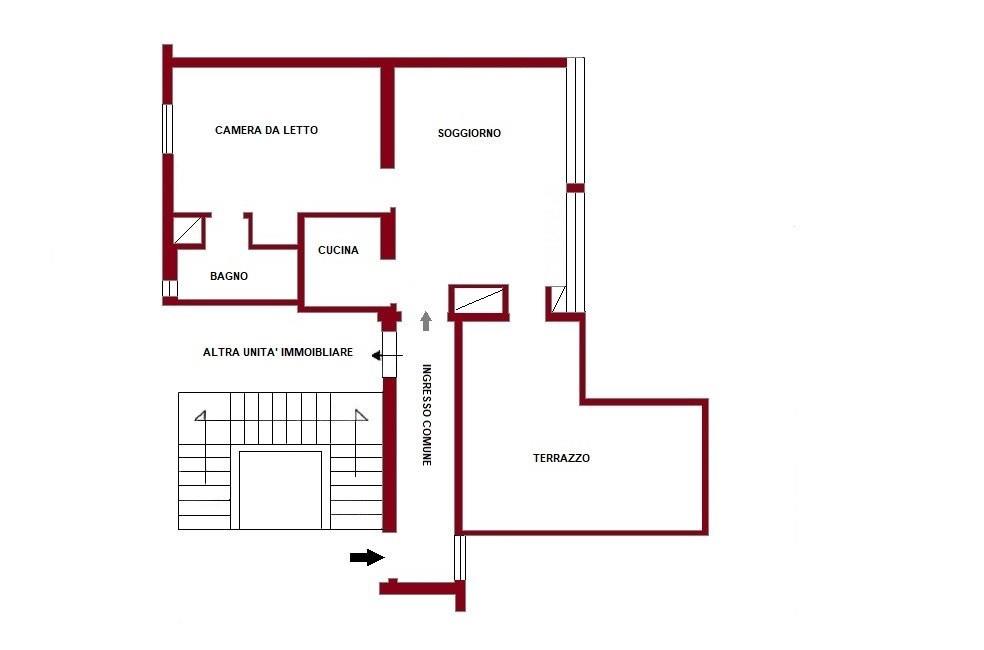 L'appartamento si trova al sesto ed ultimo piano con ascensore composto da : ingresso, corridoio, soggiorno, cucinotto, camera da letto, bagno ed ampio terrazzo. Completamente arredato.