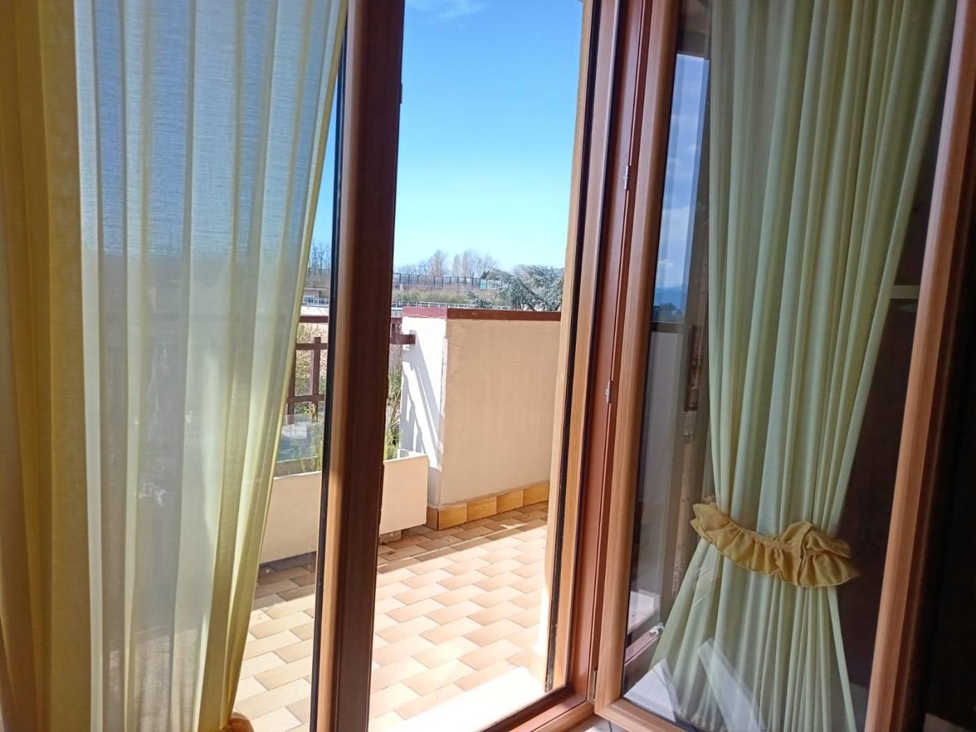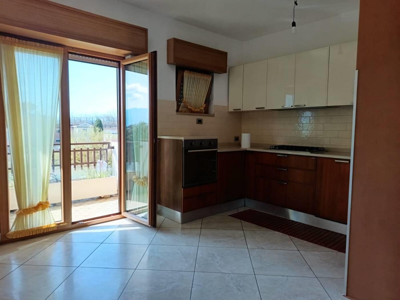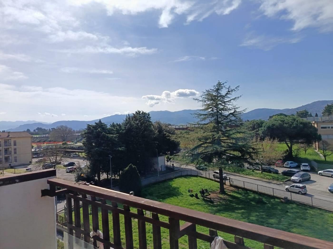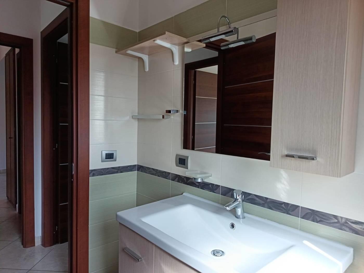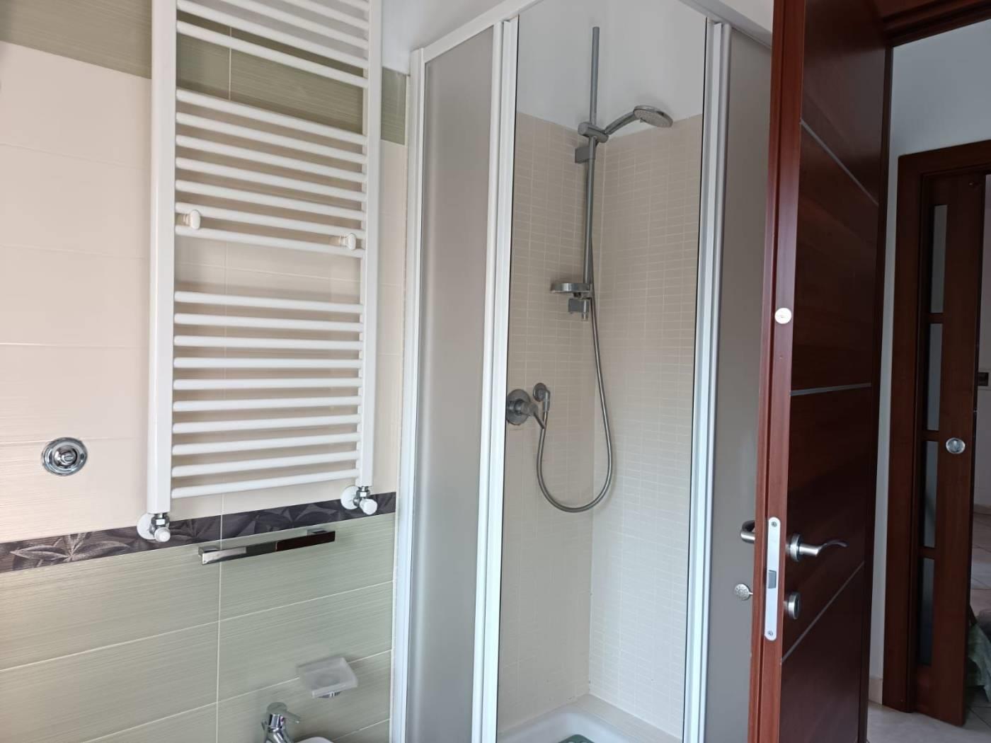Appartamento in affitto, piano terzo con ascensore, soggiorno con angolo cottura, due camere da letto, due bagni e doppio balcone. Posto auto riservato.