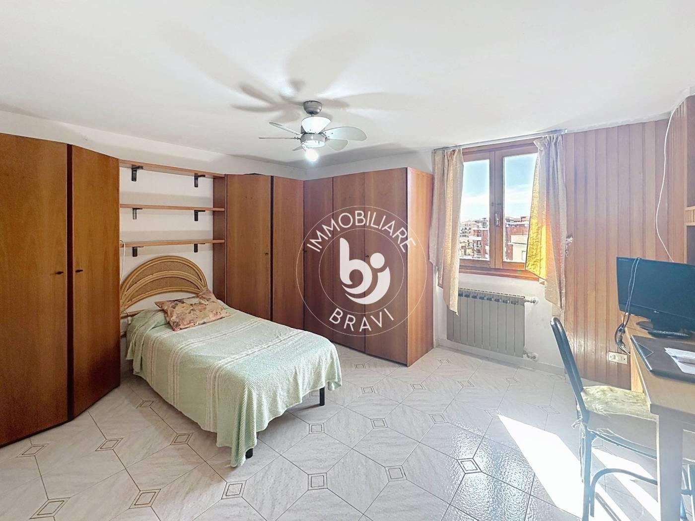 AFFITTO DI 3 CAMERE ALL'INTERNO DI UN APPARTAMENTO: Immobiliare Bravi propone in AFFITTO TRANSITORIO (fino a Maggio) 3 camere all'interno di un appartamento di 90 mq al 5° piano (ascensore fino al 4°). L’appartamento è composto da: ingresso, sala, cucina abitabile, ampio terrazzo e bagno principale(PARTE IN COMUNE) e 3 camere da letto matrimoniali. Una camera dispone di un bagno di servizio privato, mentre il bagno principale è condiviso dalle 3 camere. TERMOAUTONOMO Il prezzo riferito a ciascuna camera ed è comprensivo di tutte le spese. Ideale per studenti, militari o giovani lavoratori.
