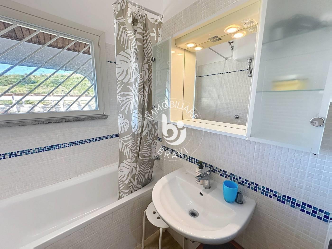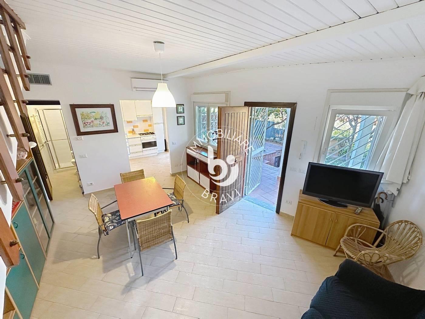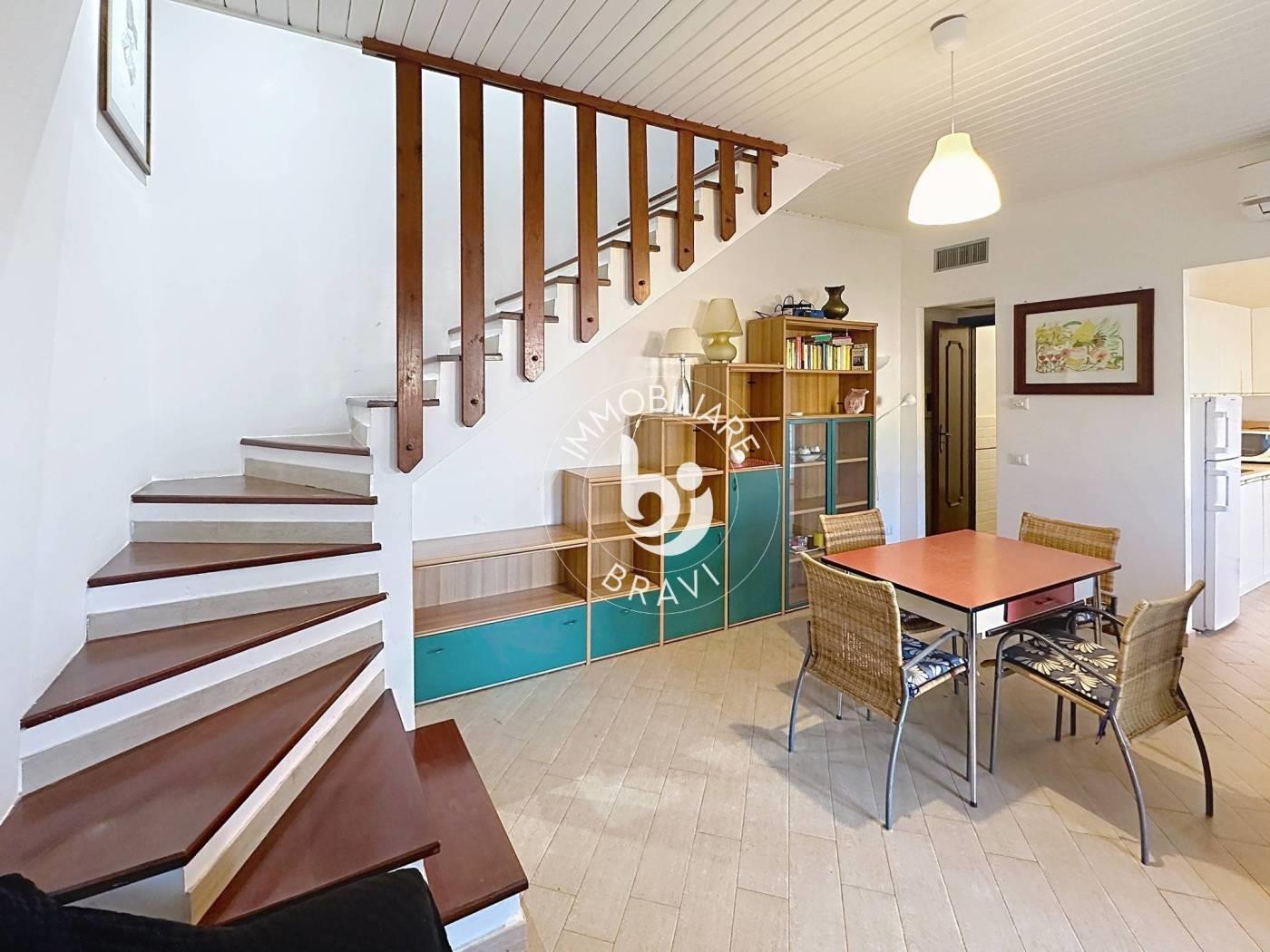 Villino a schiera angolare con ingresso indipendente, all'interno del Residence ''Poggio del Principe''. P. T: Sala con cucina a vista e bagno con doccia + giardino attrezzato di circa 90 mq. 1 Liv: 2 camere matrimoniali, di cui una con divano letto matrimoniale, bagno con vasca e terrazzo. POSTO AUTO SCOPERTO. CLIMA. NO ANIMALI.