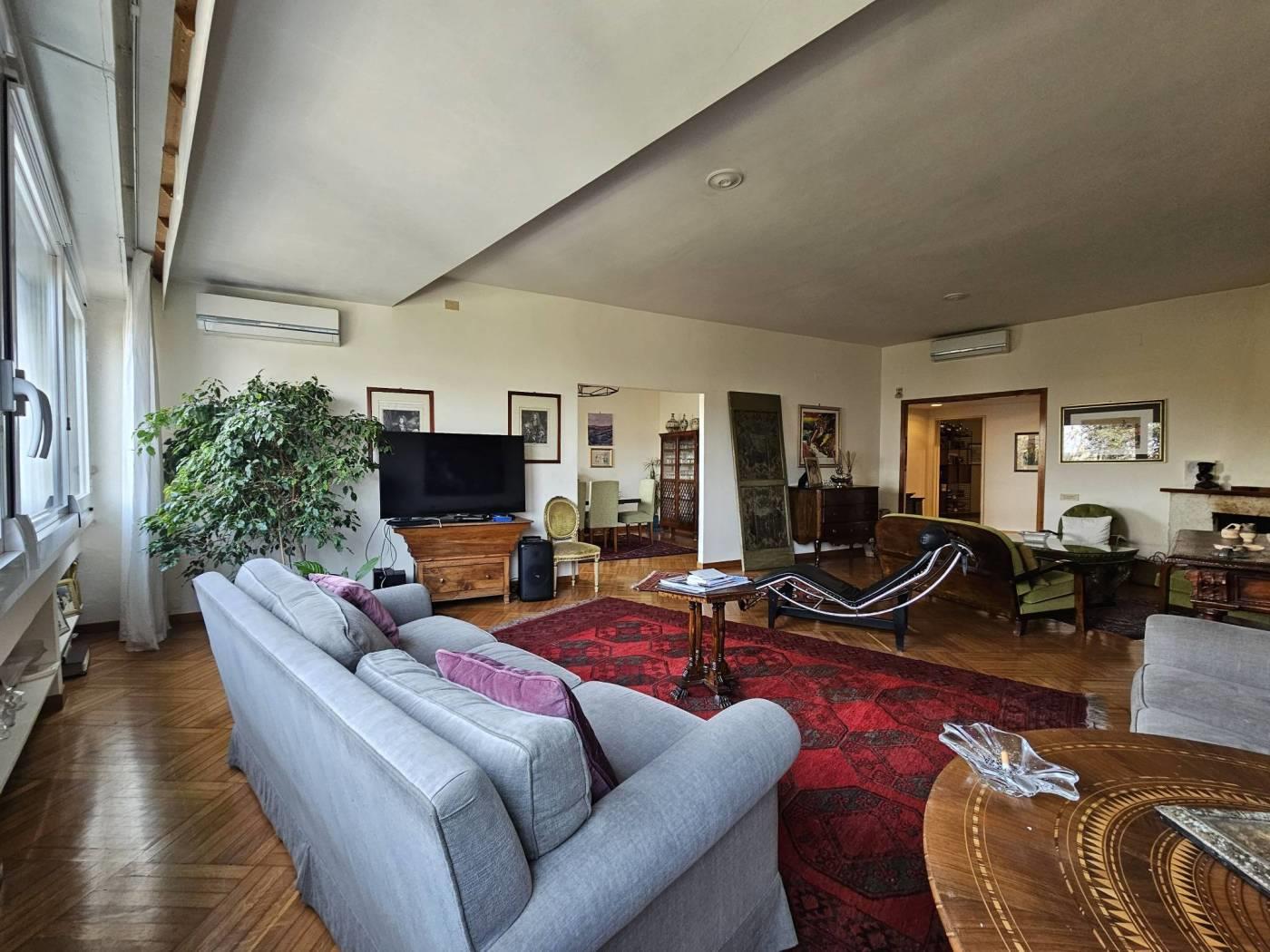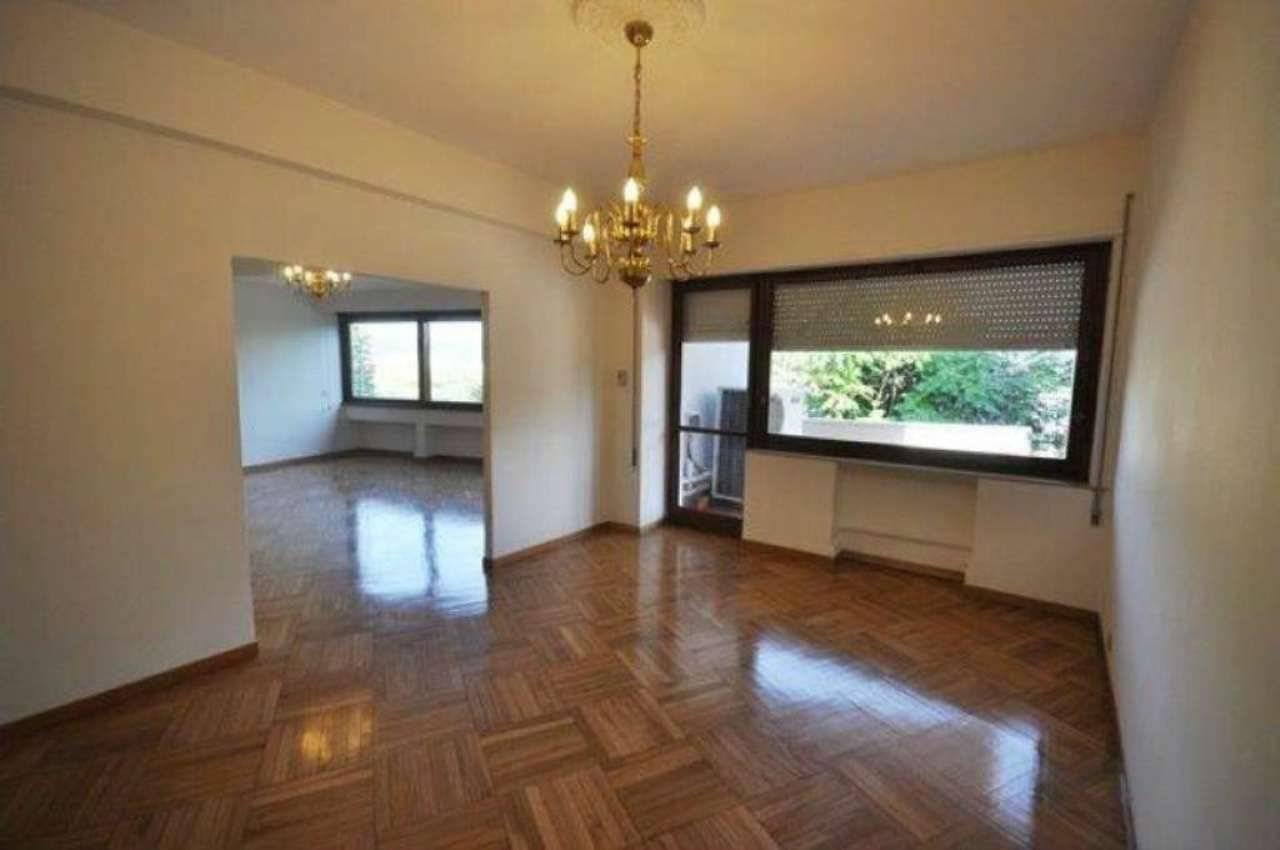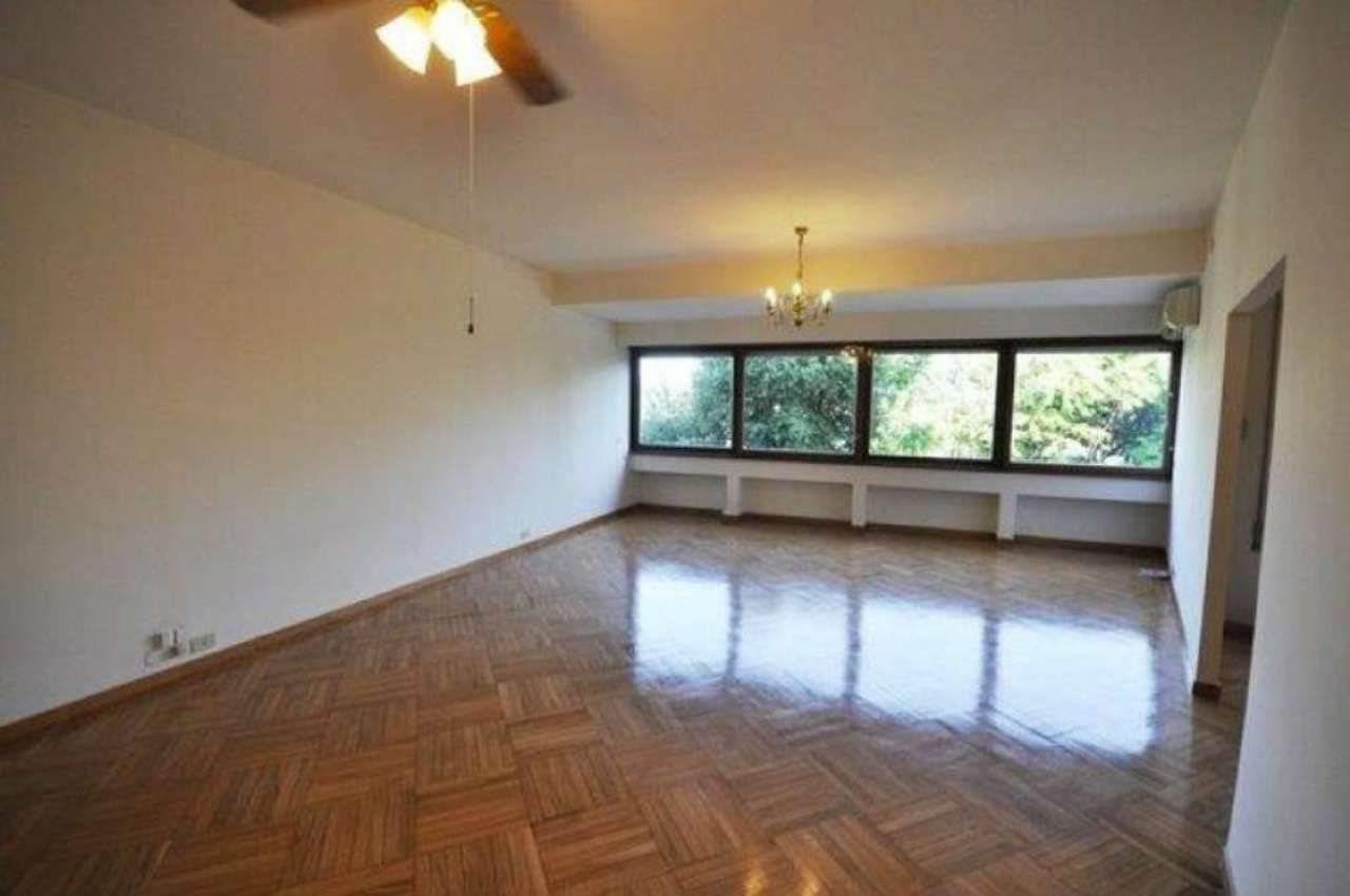 L’appartamento è così composto: ingresso con vestiaire, salone con ampie vetrate sul verde, pranzo con porta finestra su un piccolo terrazzino, tre camere da letto, due bagni (uno con vasca ed uno con doccia piccolino), cucina abitabile, lavanderia con bagnetto (al limite può diventare una cameretta di servizio).
