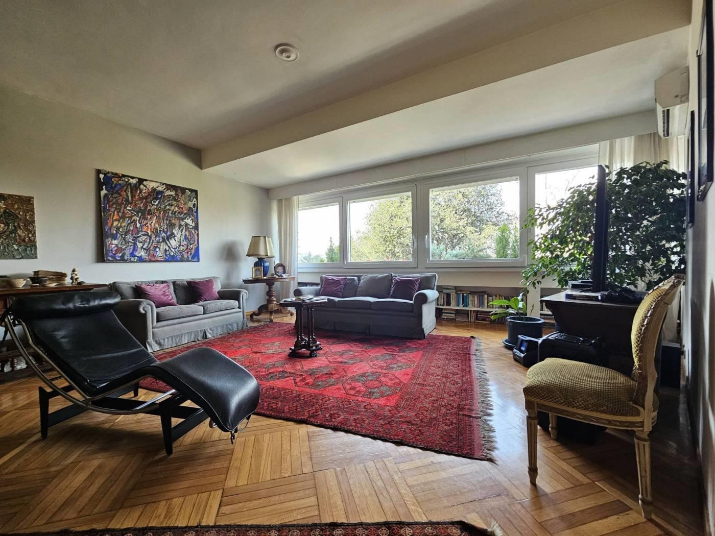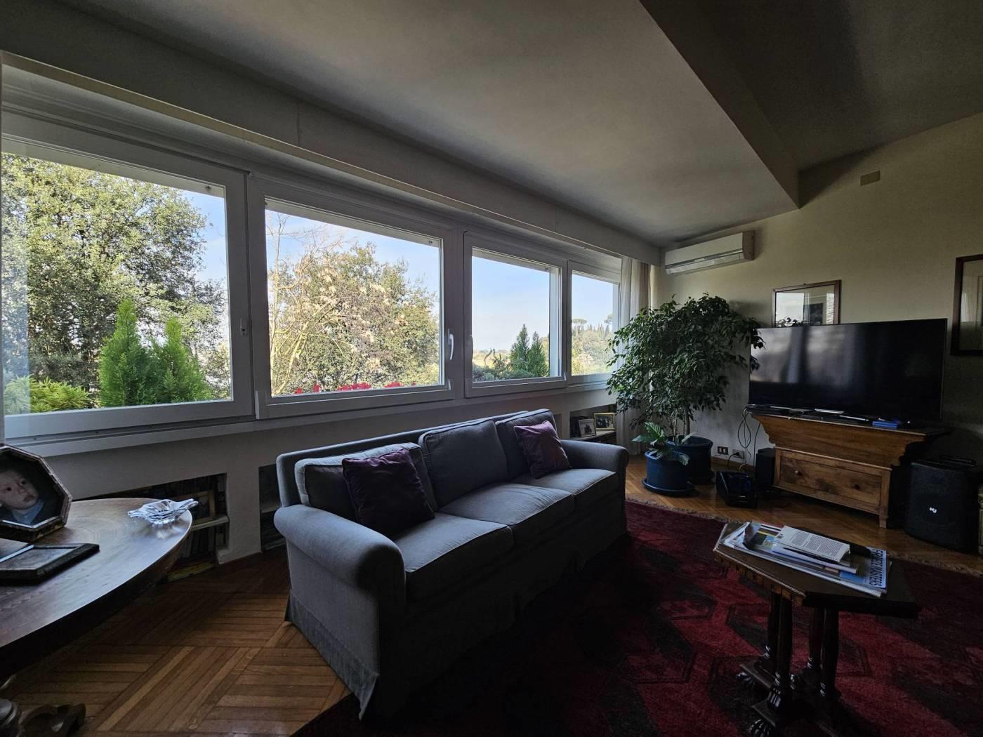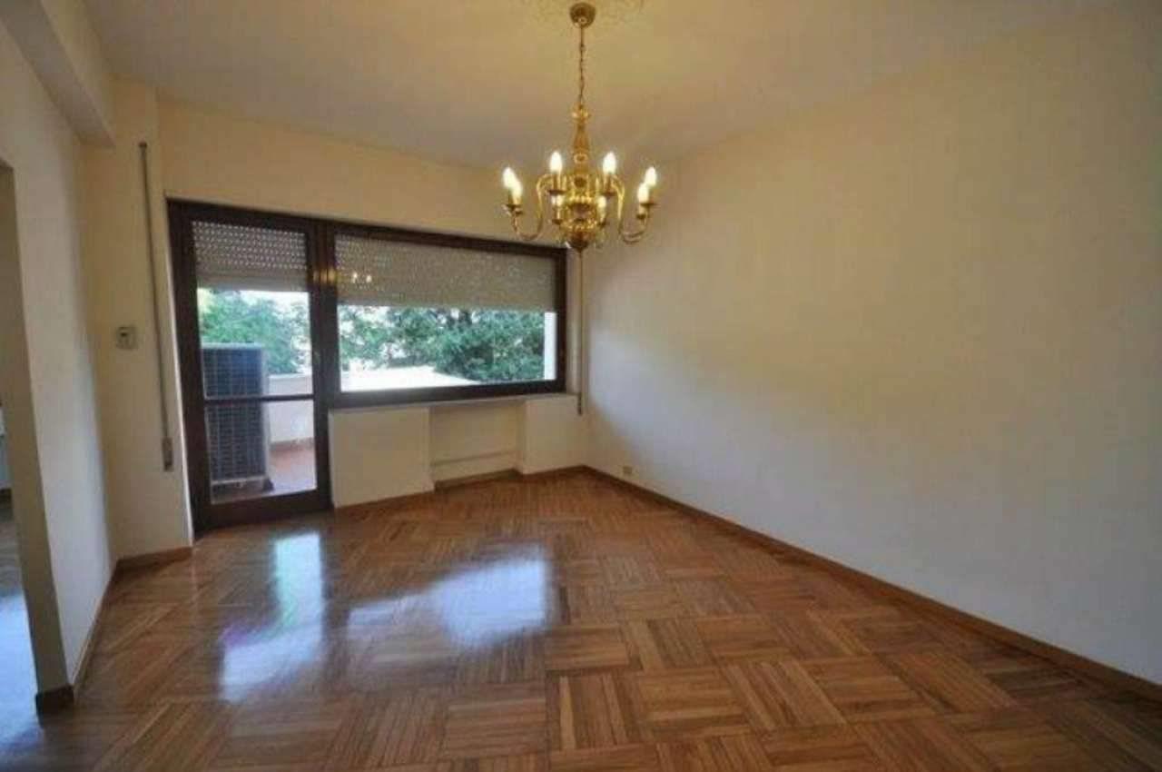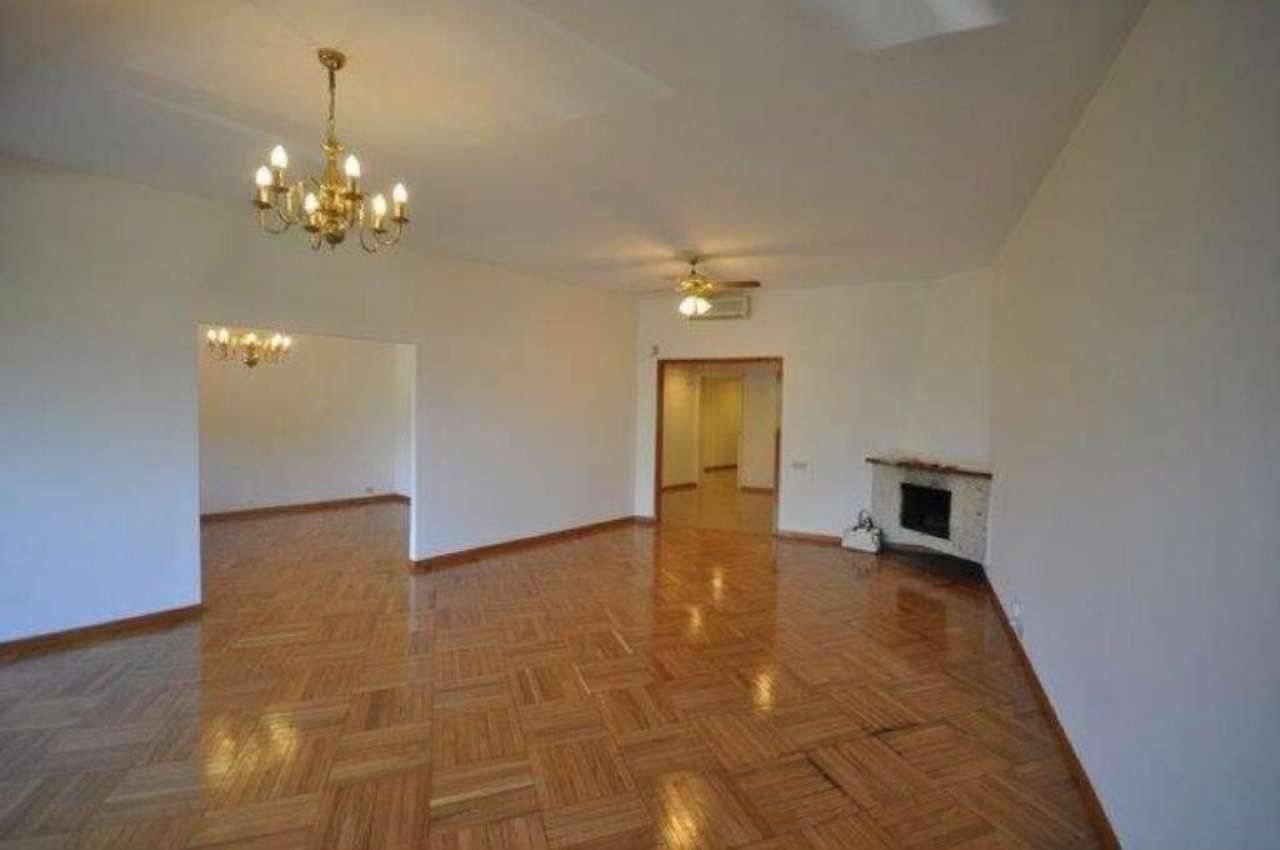 L’appartamento è così composto: ingresso con vestiaire, salone con ampie vetrate sul verde, pranzo con porta finestra su un piccolo terrazzino, tre camere da letto, due bagni (uno con vasca ed uno con doccia piccolino), cucina abitabile, lavanderia con bagnetto (al limite può diventare una cameretta di servizio).