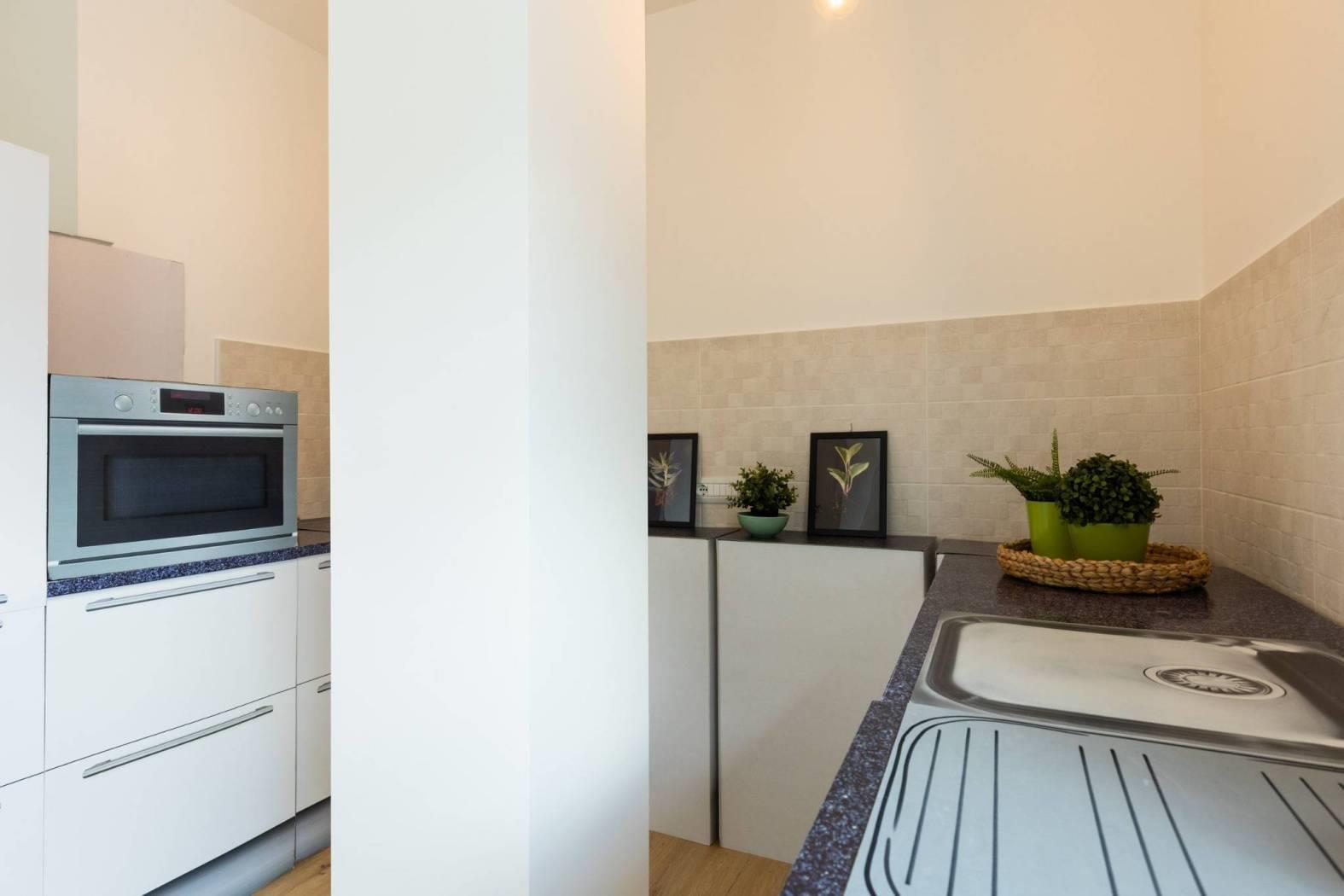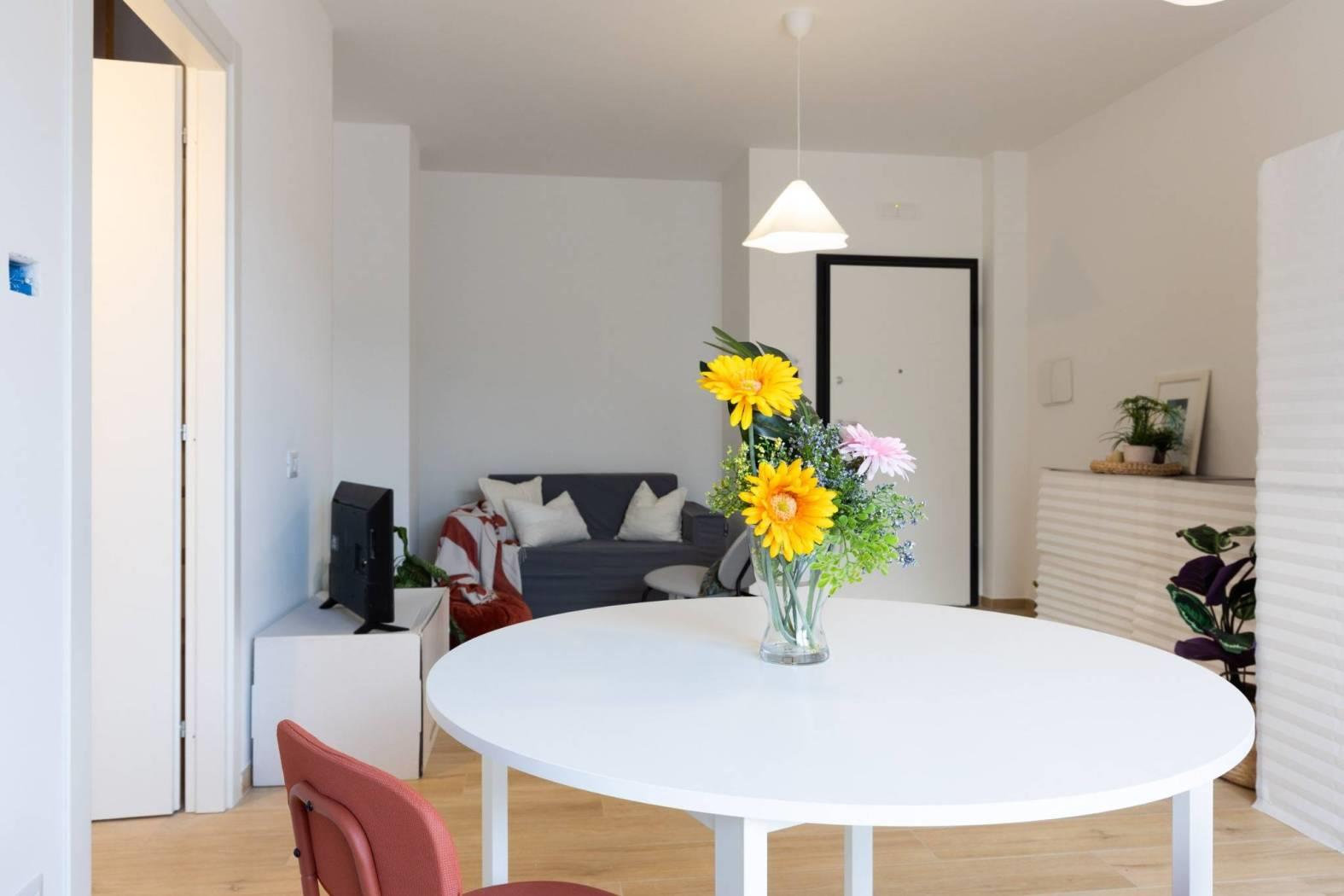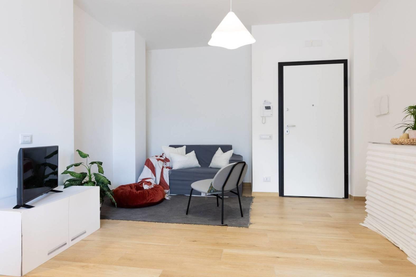 Piano terra, composto da un soggiorno con angolo cottura, una camera matrimoniale, una seconda camera, un vano soppalcato e finestrato, due bagni finestrati. La proprietà include un comodo giardino e un posto auto scoperto, con possibilità di acquistare un secondo posto auto. La classe energetica è A2, garantendo elevata efficienza energetica e bassi costi di gestione.