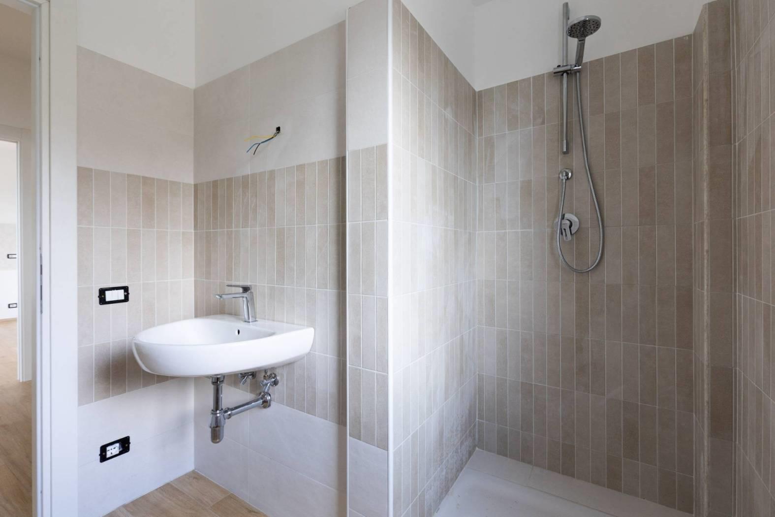 Esempio di appartamento: Interno 5, piano primo, composto da un soggiorno con angolo cottura, una camera matrimoniale, una seconda camera, due bagni finestrati. La proprietà include un comodo terrazzo panoramico e un posto auto scoperto, con possibilità di acquistare un secondo posto auto. La classe energetica è A2, garantendo elevata efficienza energetica e bassi costi di gestione.