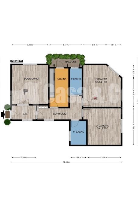 Corridoio: 4,79 x 1,20 = 5,74 Mq. circa;