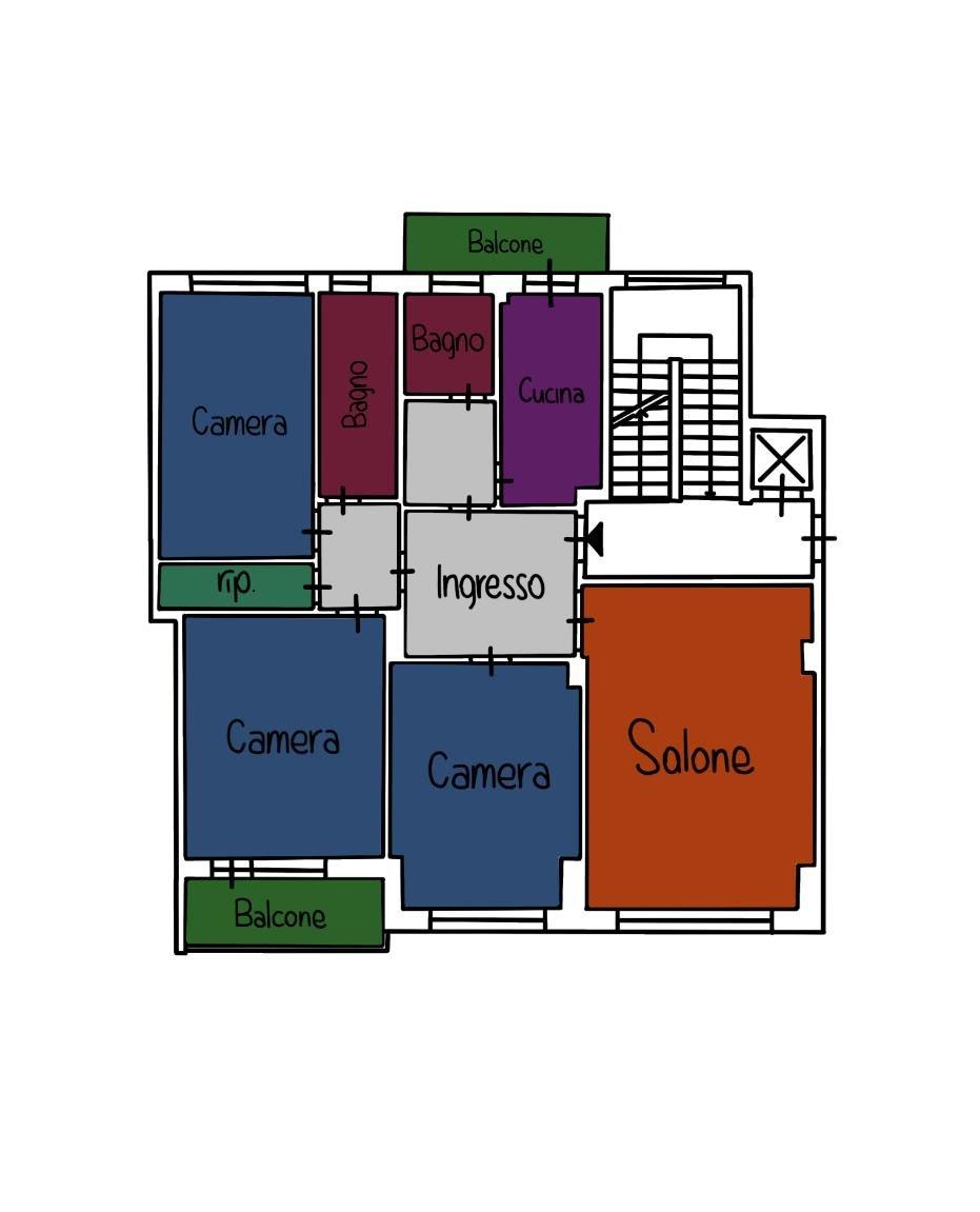 L’appartamento è caratterizzato da ampi spazi e da una disposizione funzionale degli ambienti; si presta comunque anche ad un’eventuale diversa distribuzione dei vani a scopo di personalizzazione.