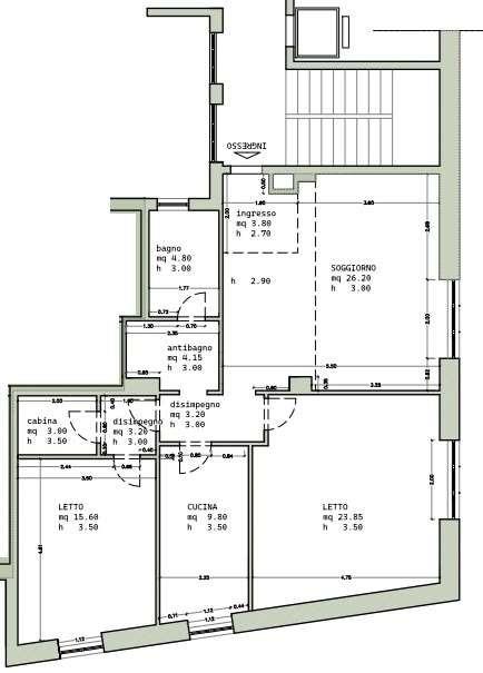 Visti gli ampi spazi degli ambienti è di facile realizzazione un'ulteriore camera facendo un'angolo cottura nel salone.