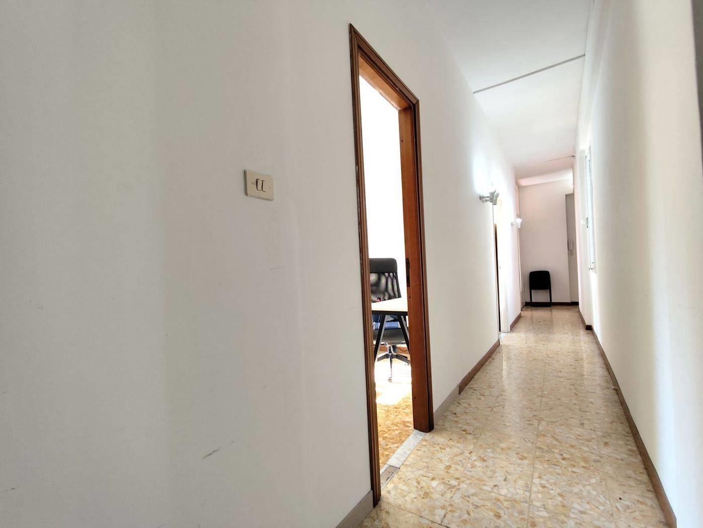 ingresso, corridoio, cucina, 3 camere da letto, due bagni con finestra, ripostiglio, due balconi di cui uno con affaccio sulla via principale.
