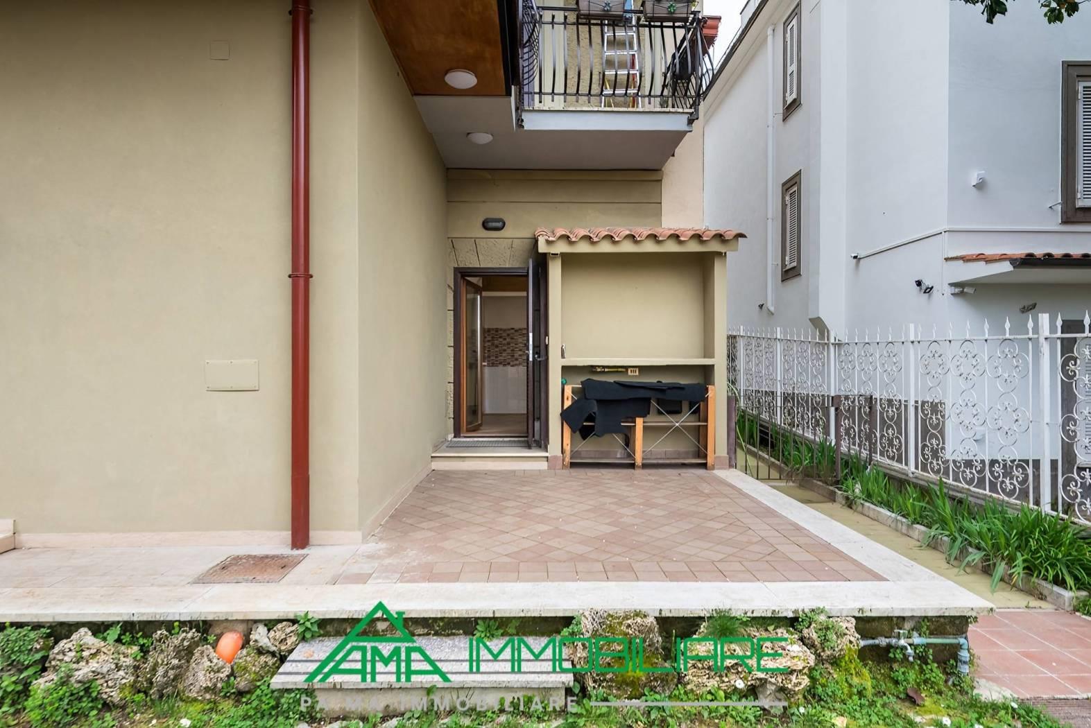 L’immobile si distingue per la comodità del doppio ingresso, sia dal vano scale condominiale sia direttamente dal giardino privato, offrendo così maggiore indipendenza e praticità. Gli ambienti interni sono ampi e ben distribuiti e comprendono una spaziosa sala doppia con angolo cottura, due camere da letto con possibilità di realizzare facilmente una terza camera, oltre a bagno e antibagno. A rendere questa proprietà ancora più interessante è il giardino perimetrale con terrazzo, uno spazio esterno raro e prezioso nel pieno centro del paese, perfetto per momenti di relax, cene all’aperto o per chi desidera vivere anche gli spazi esterni in totale privacy. La vera particolarità dell’immobile è la presenza di accesso carrabile diretto al giardino, dove una parte dell’area è già mattonata e consente di parcheggiare comodamente più automobili all’interno della proprietà: un valore aggiunto di grande importanza considerando la limitata disponibilità di posti auto nel centro storico.