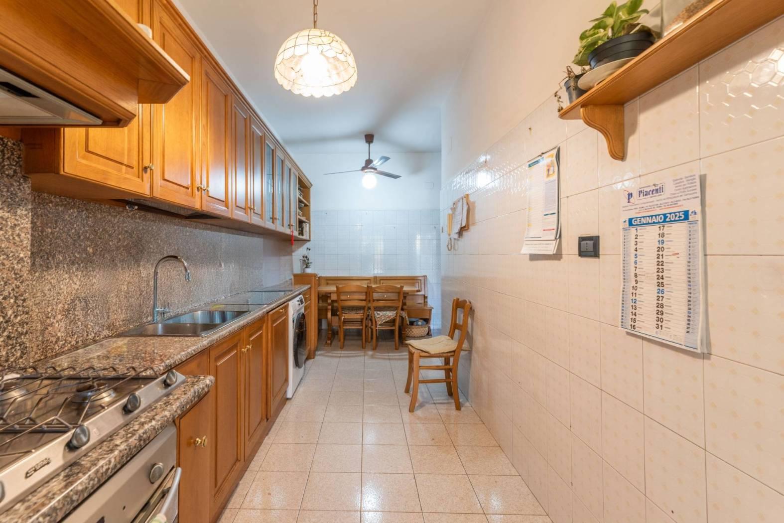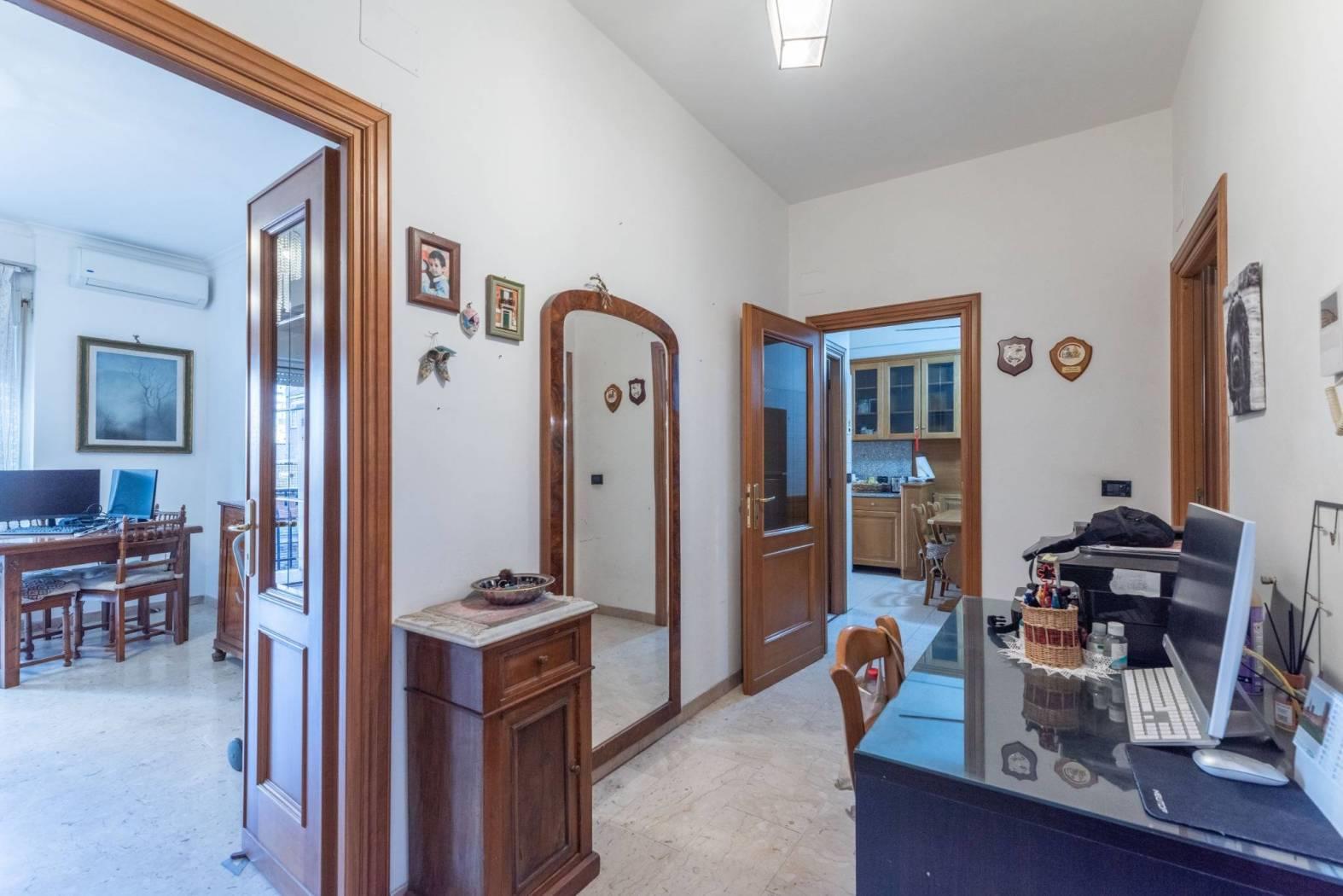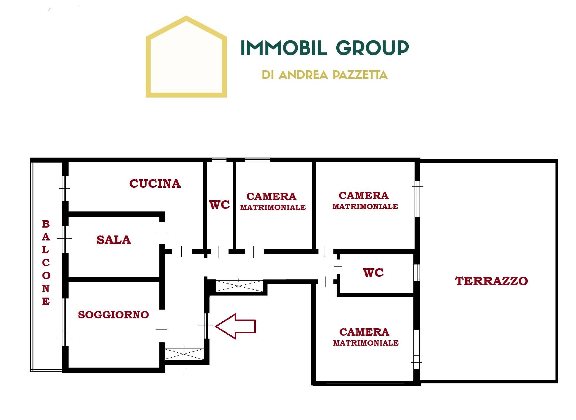 L’abitazione è di ampia metratura, posta al primo piano con ascensore, internamente composta da un ingresso con un soggiorno con antistante un balcone, un ulteriore salottino, una cucina abitabile con accesso sul balcone, un corridoio che ci conduce alla zona notte, nella quale troviamo tre camere da letto matrimoniali, un bagno finestrato con doccia, un altro bagno finestrato con vasca ed un terrazzo a livello abitabile di ampia metratura.