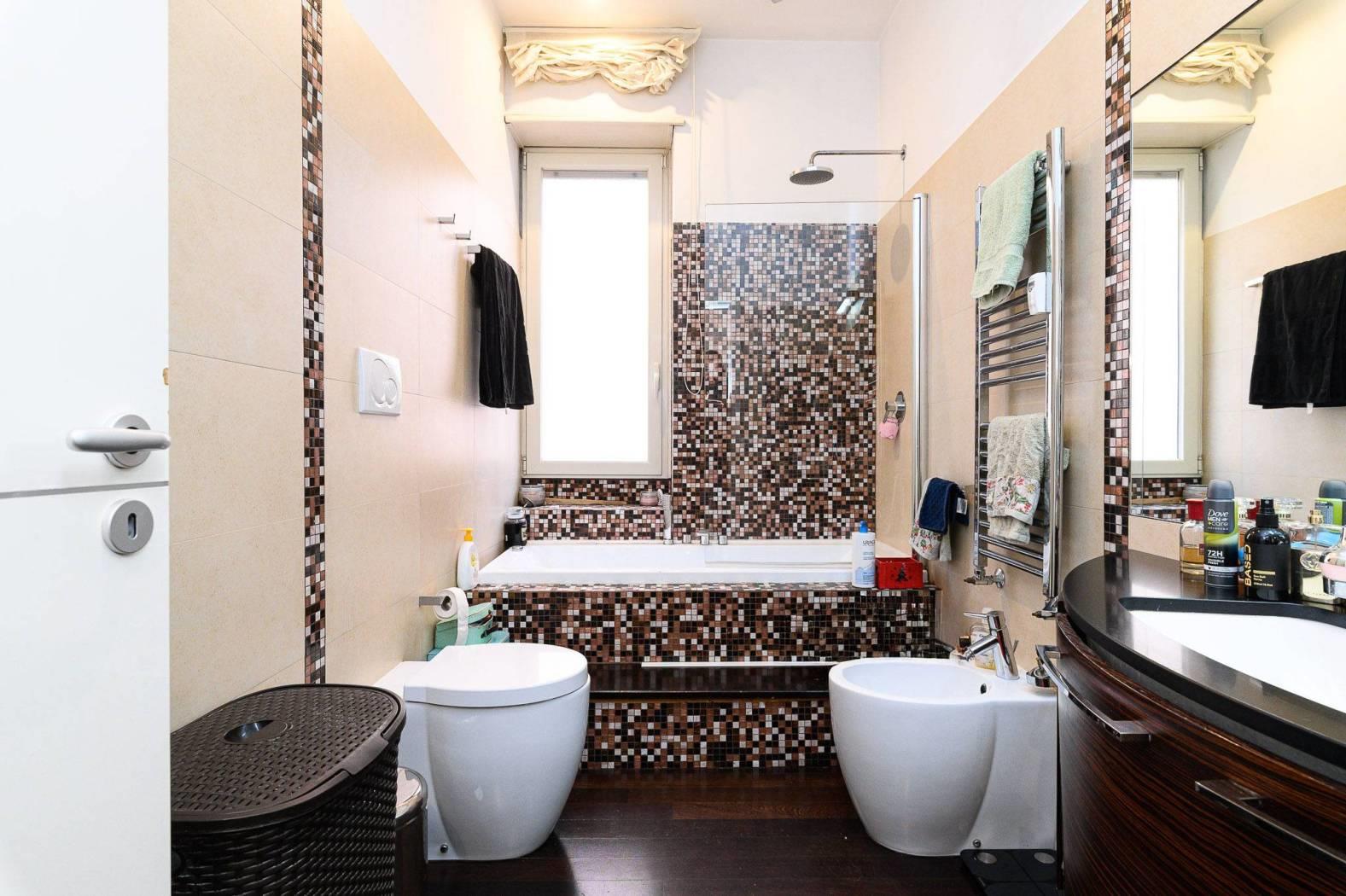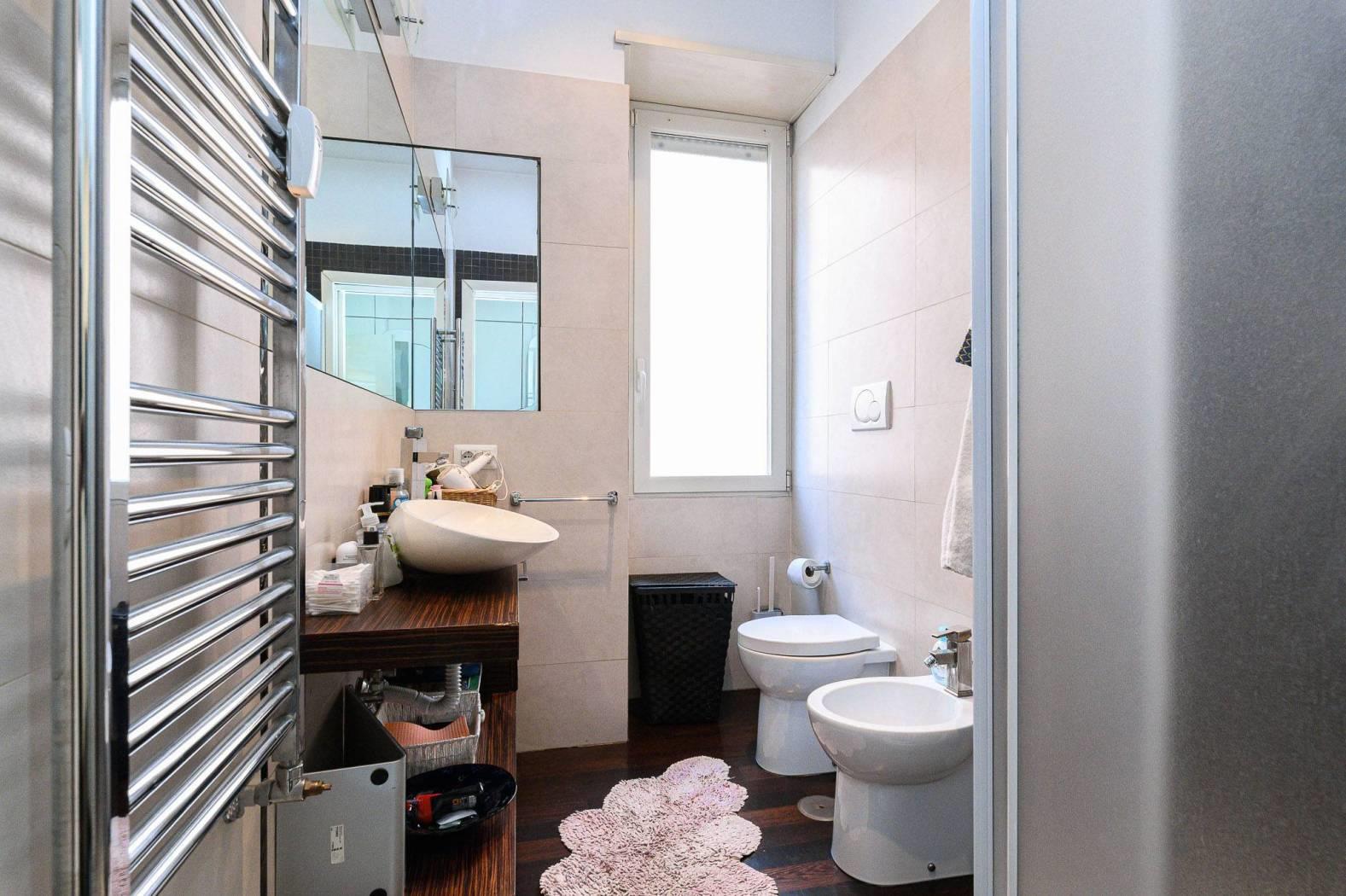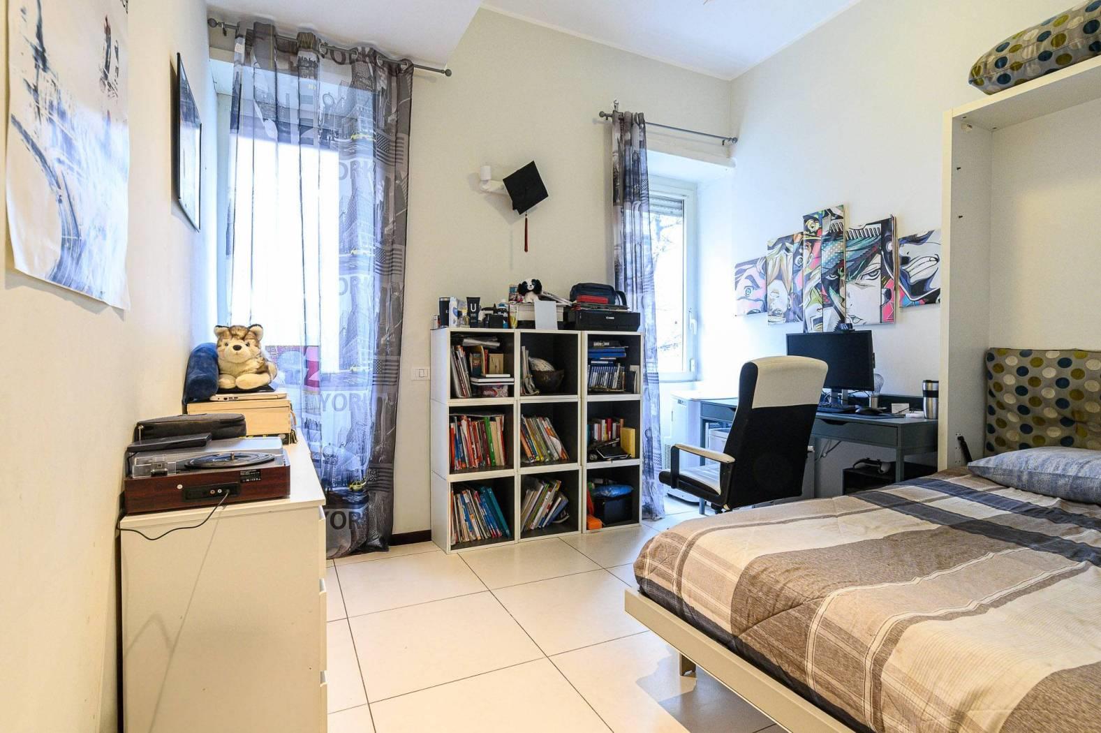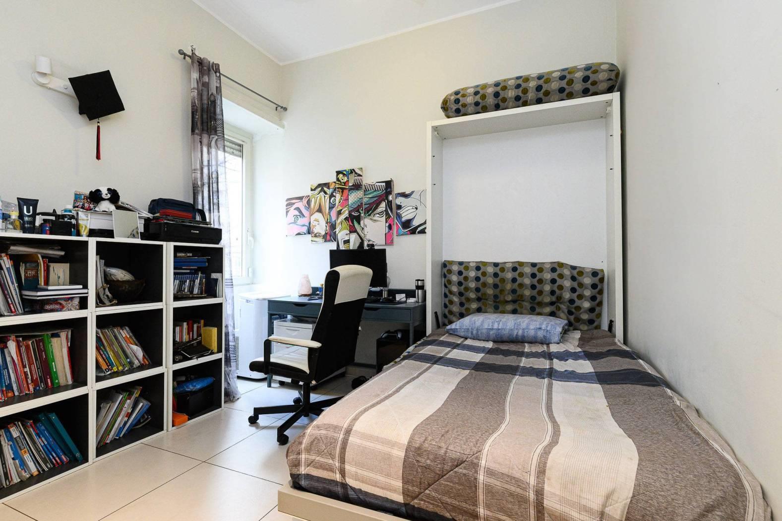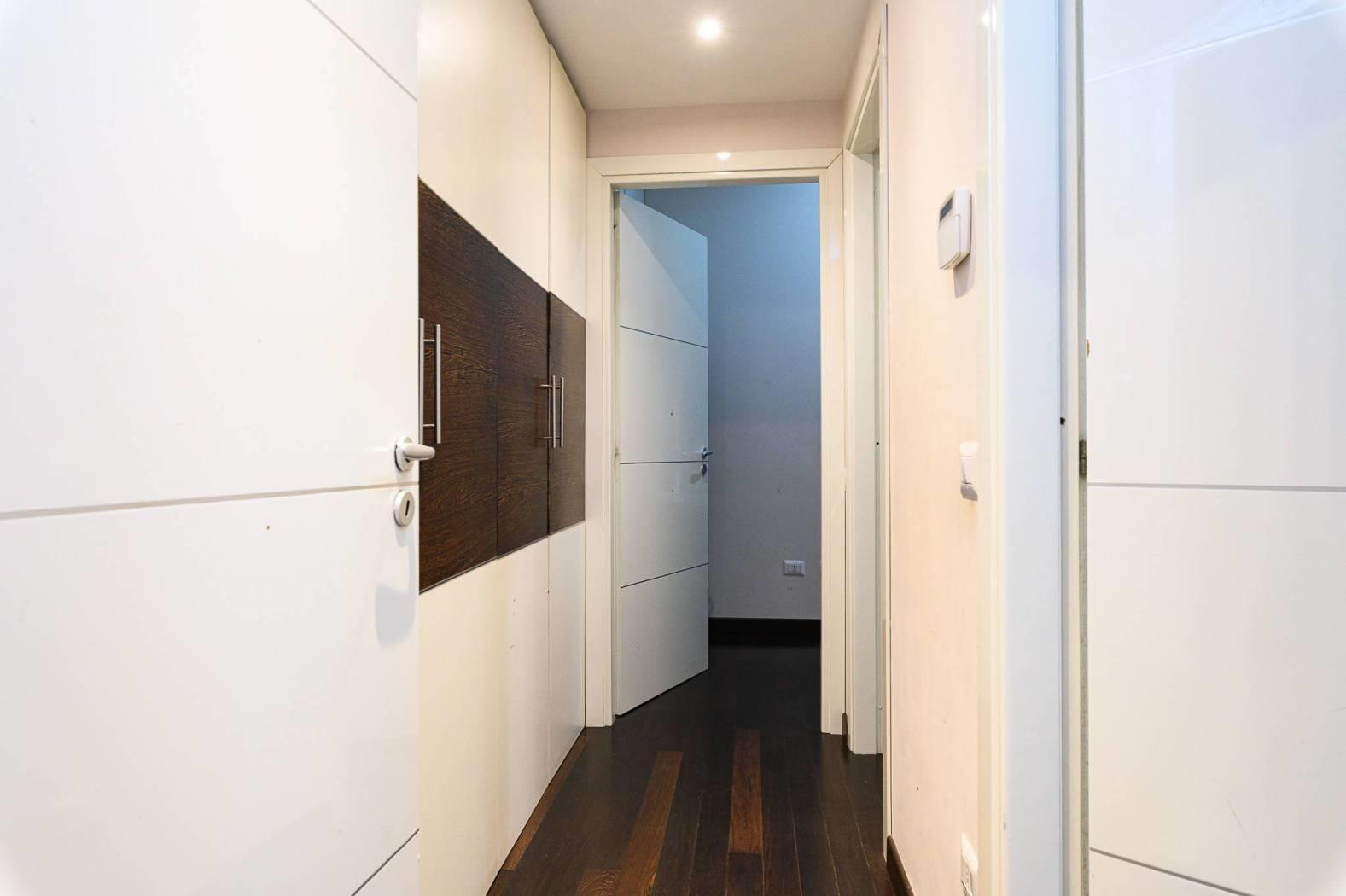 La zona notte, ben distribuita, comprende tre ampie camere da letto, di cui la camera padronale si distingue per la presenza di un bagno en suite e di una cabina armadio, elemento di grande valore, mentre armadi a muro su misura valorizzano ulteriormente gli spazi. A servizio delle restanti camere si trova un secondo bagno, elegante e ben distribuito con vasca idromassaggio.