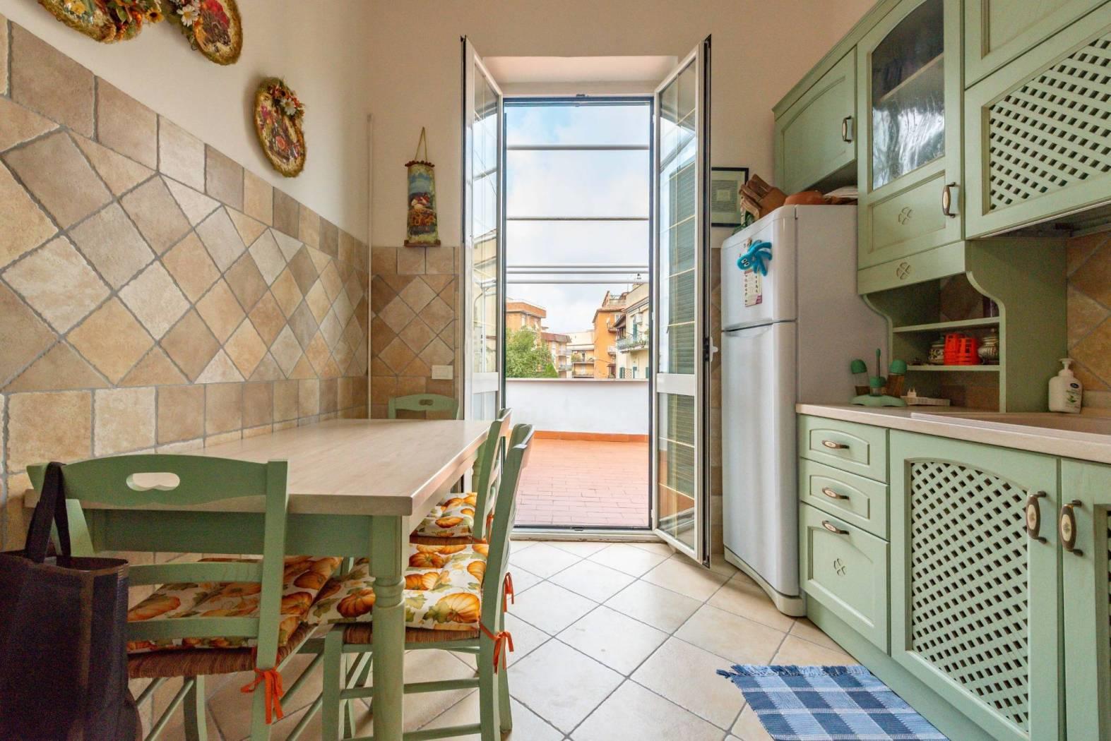 La distribuzione interna è composta da: Ampio salone con doppia finestra; Grande camera matrimoniale; Cucina abitabile con accesso diretto alla terrazza, perfetta per la bella stagione; Bagno finestrato; Ingresso spazioso.
