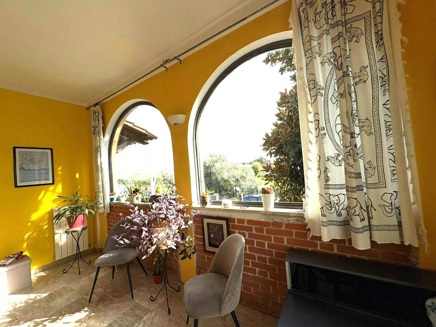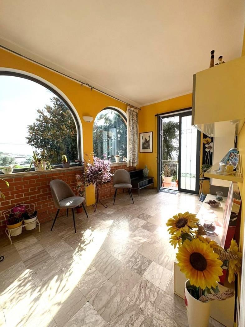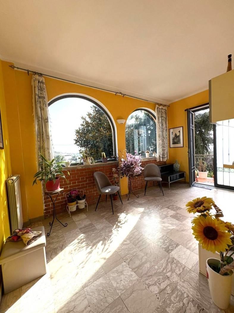 Ad accoglierci un ampia zona inondata di luce grazie alle due vetrate blindate che occupano tutta la parete laterale e alla porta finestra che ci permette di uscire su un comodo balcone abitabile dal quale si possono godere di splendidi tramonti vista la sua esposizione.