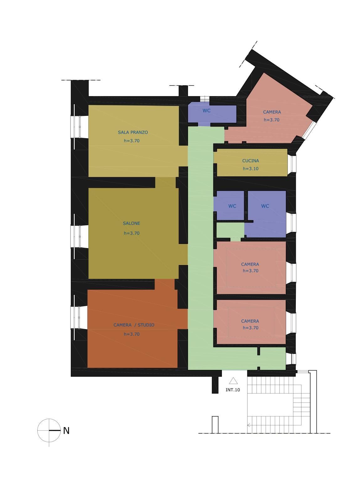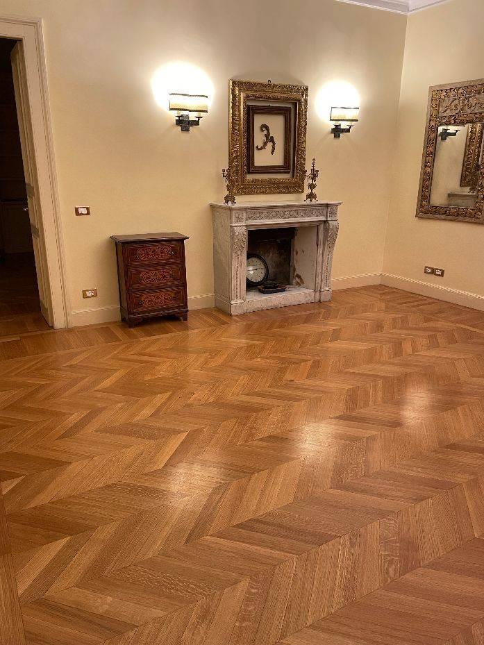 Soffitti a cupola la cui altezza sfiora i 4 mt., con i pavimenti in parquet di rovere dal caratteristico disegno ed i rivestimenti in marmo dei bagni.
