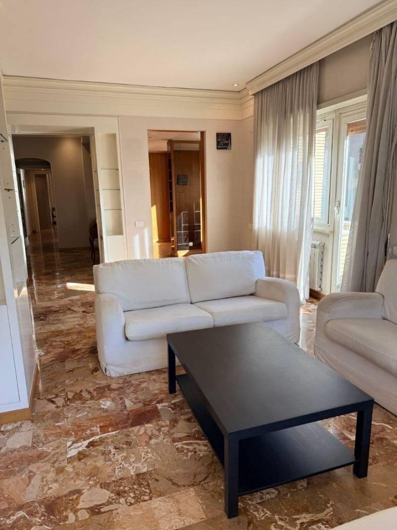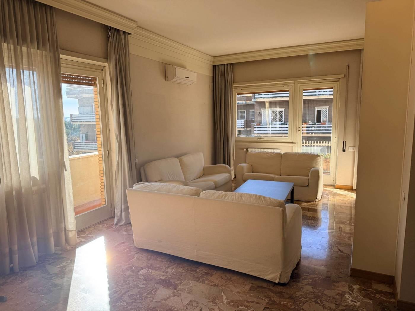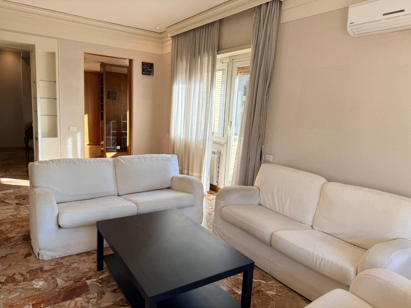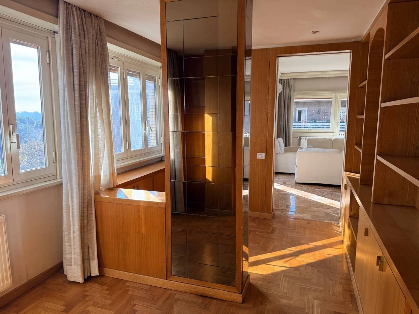 Gli infissi sono in alluminio doppio vetro, mentre la pavimentazione è marmo nella soggiorno, mentre nella zona notte e nella sala da pranzo è in parquet essenza rovere.