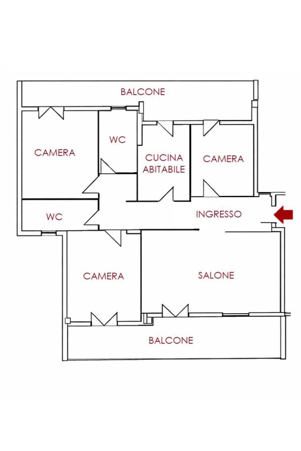 L'appartamento, di circa 108 mq, è posto al secondo piano ed è composto da ingresso, ampia e luminosa zona giorno, cucina abitabile, due camere da letto matrimoniali, una camera singola, doppi servizi (entrambi con finestra); ogni ambiente della casa ha accesso diretto ai due balconi vivibili, garantendo un'aerazione naturale costante.