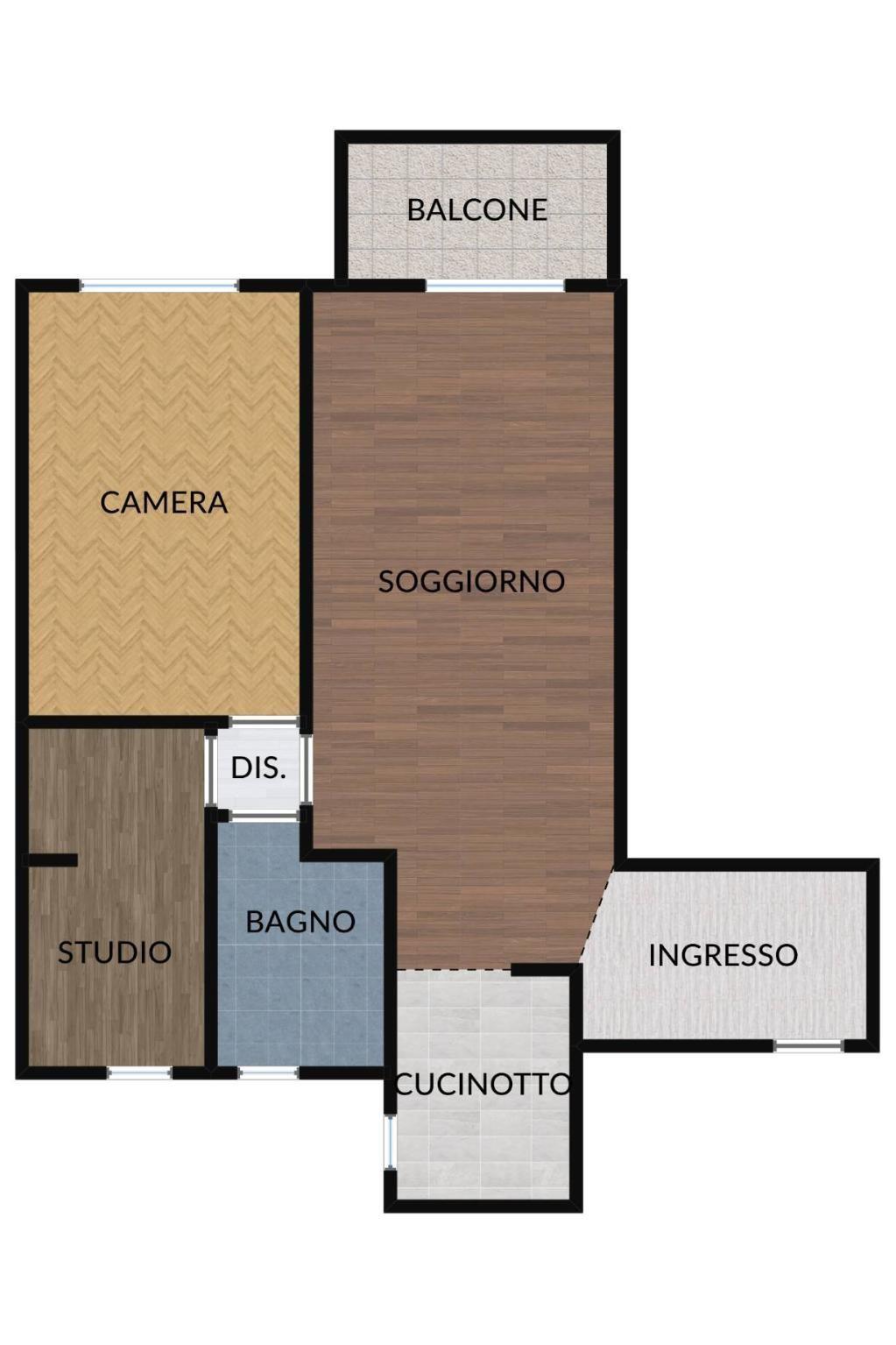Gli spazi interni sono distribuiti in modo razionale e funzionale: il soggiorno con angolo cottura, luminoso e accogliente, ha accesso diretto al balcone; la zona notte è composta da una camera da letto, uno studio versatile — ideale come seconda camera o spazio dedicato allo smart working — e un bagno. Completano la proprietà una cantina e un posto auto, pertinenze che aumentano in modo significativo il valore e la praticità dell’immobile, rendendolo particolarmente interessante anche sotto il profilo dell’investimento.