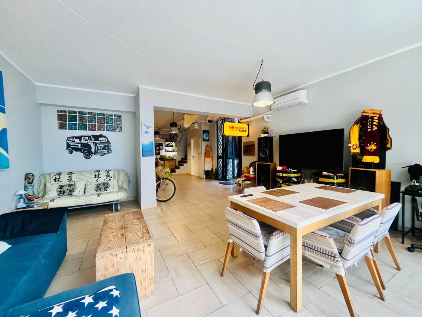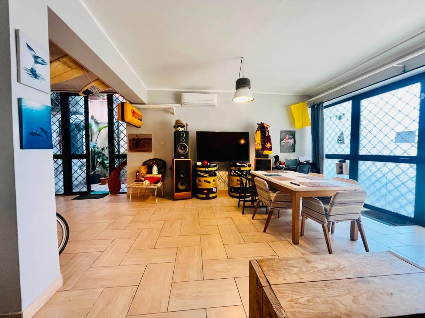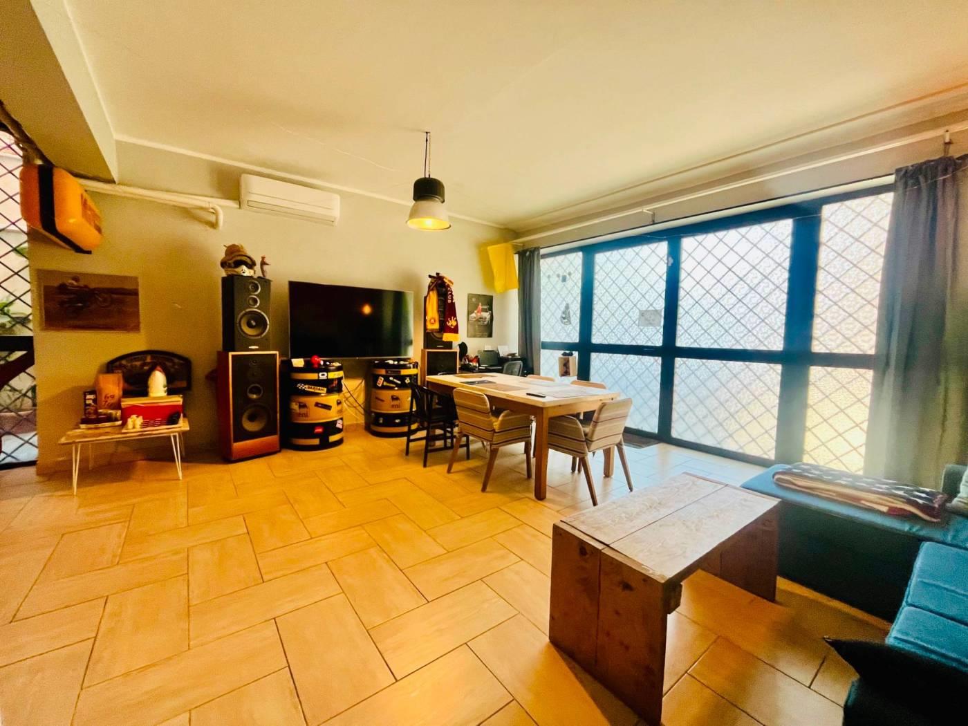 Adiacente Via del Trullo, all’interno di una palazzina in cortina, proponiamo in vendita un immobile di ampia metratura accatastato C/3 (laboratorio), attualmente organizzato anche per uso abitativo.